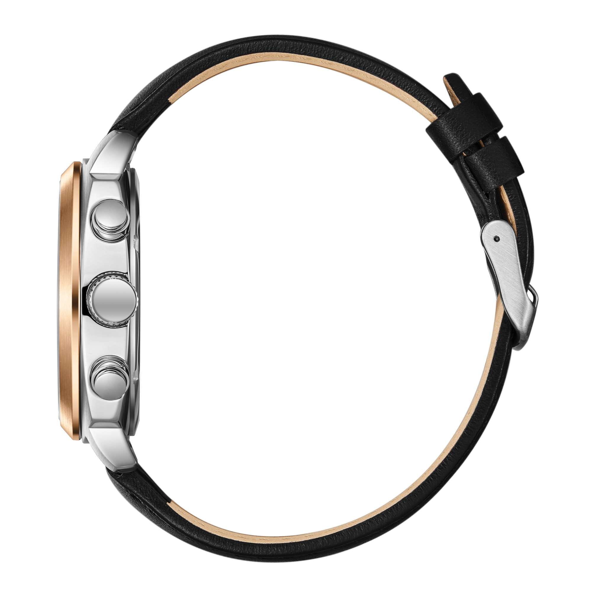 Мужские наручные часы Lee Cooper LC08172.531 оснащены кварцевым механизмом, обеспечивающий высокую точность хода и надежность. Элегантный корпус часов выполнен из суперметалла серебристого цвета, что делает их устойчивыми к внешним воздействиям и придает благородный вид. Циферблат украшен классическими стрелками и метками с люминесцентным покрытиемЛюминесцентное покрытиеПозволяет считывать показания времени в темноте. Производители наносят на стрелки, часовые индексы, безель или поверхность циферблата светонакопительный состав, дающий холодное свечение., гармонично дополняющим общий дизайн модели. Для защиты циферблата используется минеральное стеклоМинеральное стеклоМинеральное стекло представляет собой искусственно выращенный минерал кварца. Такое стекло отличается особой устойчивостью к повреждениям и царапинам. Уступает по некоторым качествам сапфировому стеклу., устойчивое к царапинам и механическим повреждениям. Неподвижный безельБезельВнешний ободок, закрепляющий стекло. В спортивных часах так называется поворотное кольцо с делениями на циферблате, выполняет роль таймера – замеряет отрезки времени на шкале. Неподвижный безель – элемент декора. Однонаправленно вращающийся безель на дайверских часах позволяет фиксировать моменты погружения и выныривания на поверхность. с IP-покрытиемIP-покрытиеМетод ионного напыления. Демонстрирует повышенную устойчивость к истиранию, окислению и химическим веществам. Под воздействием высокого давления и температуры около 1500°C молекулы металла надёжно соединяются с частицами корпуса часов. цвета розового золота. Корпус имеет круглую форму диаметром 42 мм, что делает часы заметными и подходящими. Кожаный ремешок на стандартной застёжке обеспечиваюет комфортное и безопасное ношение. Вынесенный циферблат с 24-х часовым указателем времени, индикацией даты и дня недели. Окошко даты находится в положении между 4 и 5 часов. Часы обладают водонепроницаемостью до 50 метров (5 АТМ), что позволяет использовать их в повседневной жизни, включая контакт с водой при мытье рук или дожде. Эти часы станут идеальным выбором для мужчин, ценящих стиль, качество и функциональность.