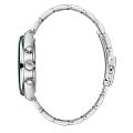 Мужские наручные часы Lee Cooper LC08175.370 оснащены кварцевым механизмом, обеспечивающий высокую точность хода и надежность. Элегантный корпус часов выполнен из суперметалла серебристого цвета, что делает их устойчивыми к внешним воздействиям и придает благородный вид. Циферблат украшен классическими стрелками с люминесцентным покрытиемЛюминесцентное покрытиеПозволяет считывать показания времени в темноте. Производители наносят на стрелки, часовые индексы, безель или поверхность циферблата светонакопительный состав, дающий холодное свечение., гармонично дополняющим общий дизайн модели. Для защиты циферблата используется минеральное стеклоМинеральное стеклоМинеральное стекло представляет собой искусственно выращенный минерал кварца. Такое стекло отличается особой устойчивостью к повреждениям и царапинам. Уступает по некоторым качествам сапфировому стеклу., устойчивое к царапинам и механическим повреждениям. Неподвижный безельБезельВнешний ободок, закрепляющий стекло. В спортивных часах так называется поворотное кольцо с делениями на циферблате, выполняет роль таймера – замеряет отрезки времени на шкале. Неподвижный безель – элемент декора. Однонаправленно вращающийся безель на дайверских часах позволяет фиксировать моменты погружения и выныривания на поверхность. с IP-покрытиемIP-покрытиеМетод ионного напыления. Демонстрирует повышенную устойчивость к истиранию, окислению и химическим веществам. Под воздействием высокого давления и температуры около 1500°C молекулы металла надёжно соединяются с частицами корпуса часов. зеленого цвета. Корпус имеет круглую форму диаметром 43 мм, что делает часы заметными и подходящими. Браслет из стали оснащен раскладной застёжкойРаскладная застёжкаТакой тип застёжки используется только на браслетах из металла. Она никогда не раскрывается полностью, происходит разделение на 2 и более частей. Раскладывающая застёжка снизит вероятность потери часов к минимуму., обеспечивающим комфортное и безопасное ношение. Вынесенный циферблат с 24-х часовым указателем времени, индикацией даты и дня недели. Часы обладают водонепроницаемостью до 50 метров (5 АТМ), что позволяет использовать их в повседневной жизни, включая контакт с водой при мытье рук или дожде. Эти часы станут идеальным выбором для мужчин, ценящих стиль, качество и функциональность.