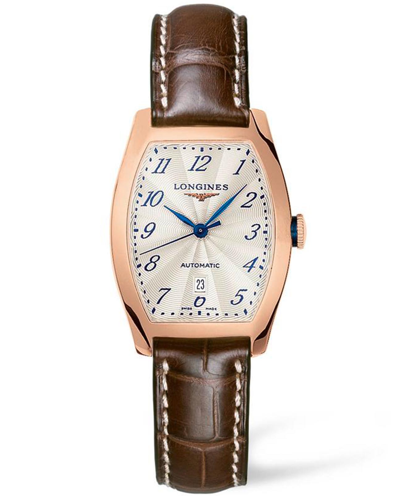 Женские швейцарские механические часы Longines Evidenza L2.142.8.73.2 станут гармоничным завершением образа. Сапфировое стеклоСапфировое стеклоПрочный и надёжный материал из кристалла сапфира синтетического происхождения, характеризующийся особой твёрдостью и устойчивостью к царапинам и повреждениям. устойчивое к появлению царапин, обладающее высокой прозрачностью с антибликовым покрытиемАнтибликовое покрытиеСлой оксида металла в 0,13-0,3 микрон, благодаря которому стекло часов не бликует и не отражает свет. Антибликовое покрытие уменьшает отражение света в 10 раз, обеспечивая отличную читаемость показателей циферблата.. Элегантная модель формы «бочка» оснащена швейцарским автоматическим механизмом L592, его запас хода – 40 часов. Корпус выполнен из 18-каратного розового золота18-каратное золотоОбозначение по каратной системе пробирования, оно показывает, сколько драгоценного металла содержится в изделии. 18 карат - в составе 75% чистого золота, соответствует 750 пробе.