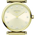 Женские швейцарские часы Longines La Grande Classique L4.209.2.33.8, кварцевый механизм с высокой точностью. Сапфировое стеклоСапфировое стеклоПрочный и надёжный материал из кристалла сапфира синтетического происхождения, характеризующийся особой твёрдостью и устойчивостью к царапинам и повреждениям. устойчивое к появлению царапин, обладающее высокой прозрачностью. Корпус часов изготовлен из стали с PVD-покрытиемPVDУльтратонкое покрытие наносится в технике вакуумного напыления, сочетает в себе нитрид титана особой прочности со слоем золота или оксида хрома. Несёт в себе декоративную или защитную функцию.. Циферблат дополнен 12 бриллиантами. Класс водозащиты: 30 метров, позволит защитить корпус от случайных брызг или капель дождя. Браслет из стали с PVD-покрытиемPVDУльтратонкое покрытие наносится в технике вакуумного напыления, сочетает в себе нитрид титана особой прочности со слоем золота или оксида хрома. Несёт в себе декоративную или защитную функцию. на раскладной застёжкеРаскладная застёжкаТакой тип застёжки используется только на браслетах из металла. Она никогда не раскрывается полностью, происходит разделение на 2 и более частей. Раскладывающая застёжка снизит вероятность потери часов к минимуму..