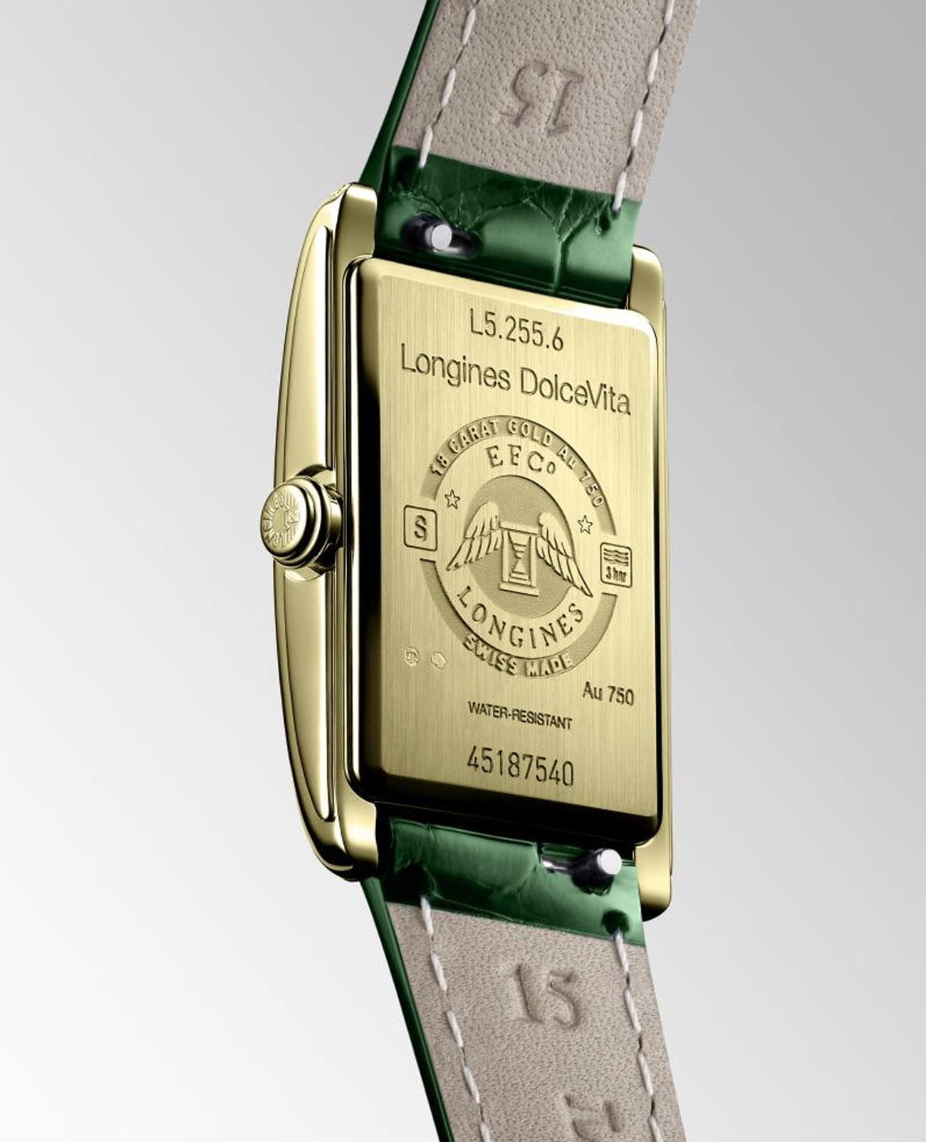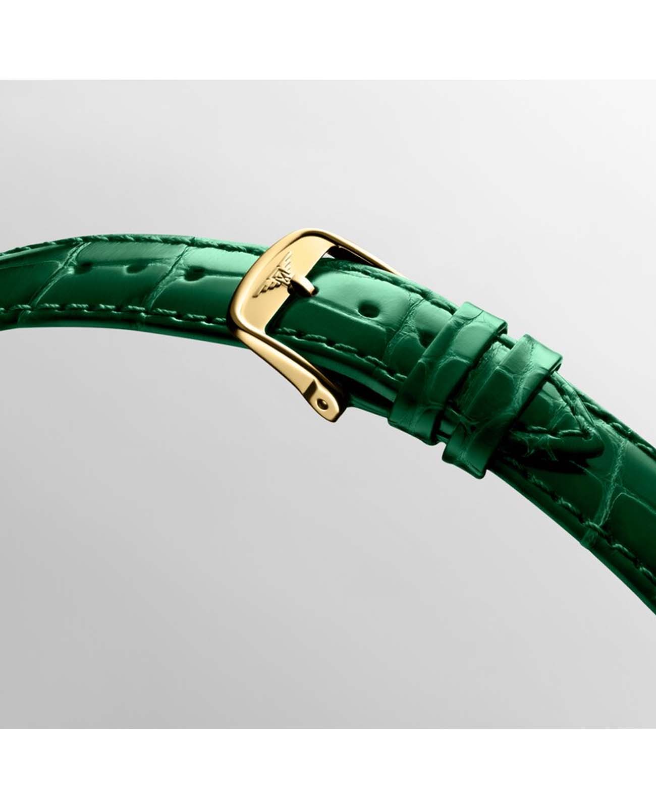 Женские швейцарские часы Longines DolceVita L5.255.6.95.2, кварцевый механизм с высокой точностью. Сапфировое стеклоСапфировое стеклоПрочный и надёжный материал из кристалла сапфира синтетического происхождения, характеризующийся особой твёрдостью и устойчивостью к царапинам и повреждениям. устойчивое к появлению царапин, обладающее высокой прозрачностью. Корпус часов изготовлен 18-каратного желтого золота. Метки в виде римских цифр. Малая секундная стрелка в положении 6 часов. Класс водозащиты: 30 метров, позволит защитить корпус от случайных брызг или капель дождя. Ремешок из кожи аллигатора с системой быстрой замены на стандартной застежке.