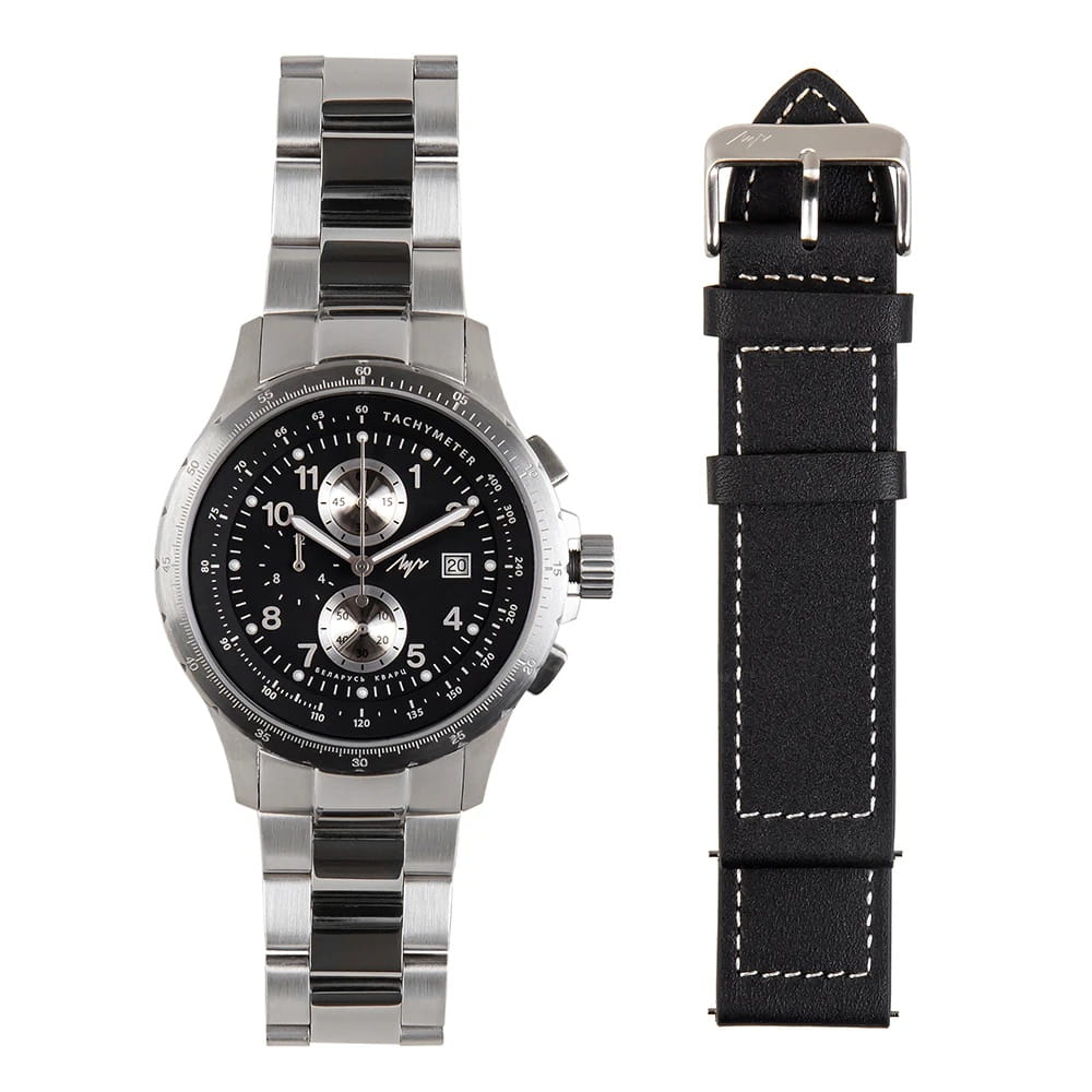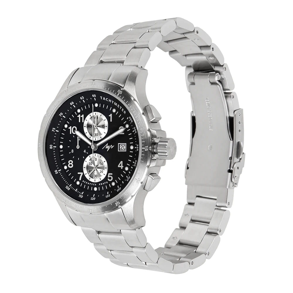 Мужские наручные часы Луч Aviator 740280595 — это стильный хронографХронографФункция позволяет измерять отрезки времени с особой точностью: часы, минуты, секунды. Верным признаком хронографа является наличие на циферблате 3 дополнительных окошек-счётчиков., который сочетает элегантность и современный дизайн. Элегантный корпус диаметром 44 мм выполнен из нержавеющей стали придает модели особый изысканный вид. Циферблат защищен сапфировым стекломСапфировое стеклоПрочный и надёжный материал из кристалла сапфира синтетического происхождения, характеризующийся особой твёрдостью и устойчивостью к царапинам и повреждениям., обеспечивающим устойчивость к царапинам. Метки в виде штрихов и арабских цифр, окошко даты находится в положении 3 часа. Часы оснащены кварцевым механизмом высокой точности, а стальной браслет на раскладной застёжкеРаскладная застёжкаТакой тип застёжки используется только на браслетах из металла. Она никогда не раскрывается полностью, происходит разделение на 2 и более частей. Раскладывающая застёжка снизит вероятность потери часов к минимуму. гарантирует комфортную посадку на запястье. Стрелки с люминесцентным покрытиемЛюминесцентное покрытиеПозволяет считывать показания времени в темноте. Производители наносят на стрелки, часовые индексы, безель или поверхность циферблата светонакопительный состав, дающий холодное свечение. позволяют легко считывать время даже в условиях недостаточного освещения, тахиметрТахиметрРазмеченная шкала, располагается на ободке или безеле часов. Тахиметр позволяет рассчитать скорость на определённом участке пути, расстояние измеряется в километрах или милях. по внешнему краю. Водозащита 100 метров позволит плавать, нырять и заниматься другими водными видами спорта. Луч — отличный выбор для тех, кто ценит утонченность и качество. В комплекте два ремня: кожаный и стальной.