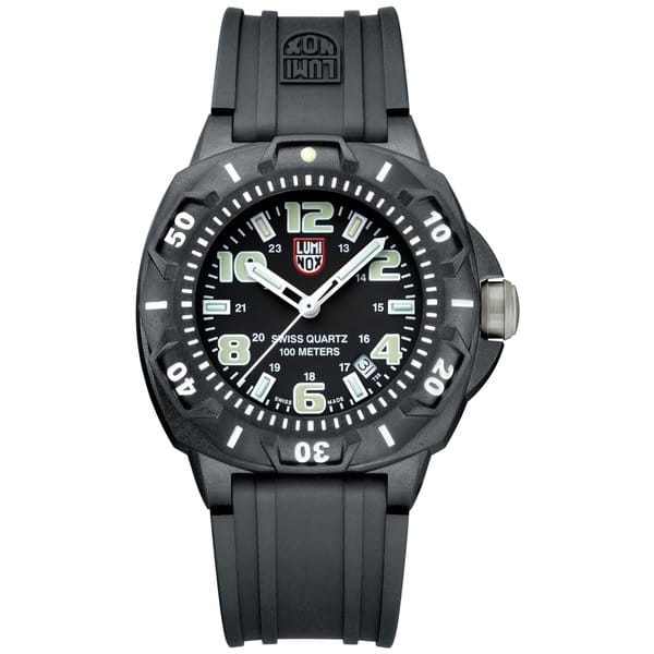 Эффектные швейцарские наручные часы. 12-ти и 24-х часовой формат времени. Безель вращается в одном направлении. Задняя крышка из усиленного карбона закреплена стальными винтами. Заводная головка с защитой выполнена из стали. Материал корпуса: пластик, усиленный прессованный карбон; Материал браслета: полиуретановый; Стекло: Минеральное; Водозащита: 100 м. (WR 100).