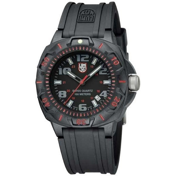 Эффектные швейцарские наручные часы. 12-ти и 24-х часовой формат времени. Безель вращается в одном направлении. Задняя крышка из усиленного карбона закреплена стальными винтами. Заводная головка с защитой выполнена из стали. Материал корпуса: пластик, усиленный прессованный карбон; Материал браслета: полиуретановый; Стекло: Минеральное; Водозащита: 100 м. (WR 100).
