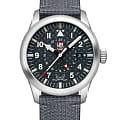 Эти часы Luminox x VOLITION AMERICA Flight Force Pilot Watch XA.9522.VOL это новейшая модель, вдохновленная шлемами, которые носят военнослужащие ВВС США. Они оснащены 42-миллиметровым черным циферблатом, защищенным сапфировым стекломСапфировое стеклоПрочный и надёжный материал из кристалла сапфира синтетического происхождения, характеризующийся особой твёрдостью и устойчивостью к царапинам и повреждениям. с антибликовым покрытиемАнтибликовое покрытиеСлой оксида металла в 0,13-0,3 микрон, благодаря которому стекло часов не бликует и не отражает свет. Антибликовое покрытие уменьшает отражение света в 10 раз, обеспечивая отличную читаемость показателей циферблата., и стильным серым тканевым ремешком с фирменной классической застежкой застежкой Luminox. Часы обладают функцией GMTGMTОтображение времени второго часового пояса.Такая функция особенно актуальна для путешественников и бизнесменов,которые общаются с людьми из разных стран,теперь вы всегда будете знать,какой час у вашего партнёра или близкого человека., что позволяет отслеживать время в двух часовых поясах одновременно, делая их идеальными спутниками для путешественников по всему миру. Дизайн с характерным треугольником и двумя точками под отметкой 12 часов, что обеспечивает быструю ориентацию и легкость считывания времени. Механизм на базе швейцарского кварца RONDA 515.24H обеспечивает работу часов до 50 месяцев без замены батареи, а постоянное свечение циферблата сохраняется до 25 лет благодаря LLTLLTLLT — это автономный механизм подсветки, основанный на использовании микроскопических газонаполненных элементов. Специальные герметичные капсулы из боросиликатного стекла, интегрированные в циферблат, генерируют свечение без необходимости подключения к внешним источникам энергии. Для их работы не требуется ни дополнительный свет, ни механическое воздействие (например, нажатие кнопки). Свечение возникает благодаря химическому процессу: реакция между тритием, заключенным в капсулах, и люминофорным покрытием создает стабильное автономное освещение. Технология обеспечивает энергетическую независимость и долговечность подсветки.-подсветке. Корпус выполнен из нержавеющей стали 316L и выдерживает погружение на глубину до 100 метров. Завинчивающаяся заводная головка и прозрачная задняя крышка из нержавеющей стали добавляют прочности и эстетической привлекательности.
