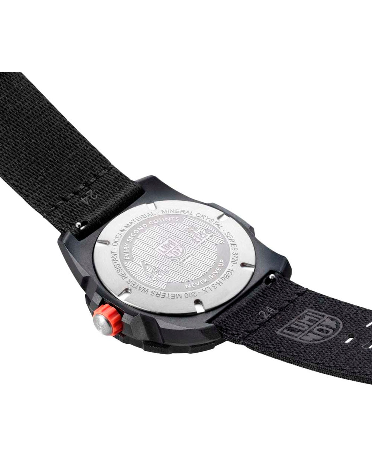 Мужские наручные часы Luminox Bear Grylls Survival ECO NO PLANET B XB.3722.ECO сочетают в себе экологичность и функциональность для любителей активного образа жизни. Модель обладает круглым корпусом диаметром 43 мм, изготовленным из переработанного океанского пластика, что обеспечивает высокую устойчивость к внешним воздействиям при минимальном воздействии на окружающую среду. Браслет выполнен из нейлона черного цвета на стандартной застежке, гарантирующей комфортное ношение и безопасность. Циферблат черного цвета оснащен индикацией времени и даты, а также люминесцентными элементами для видимости в темноте. Для защиты используется минеральное стеклоМинеральное стеклоМинеральное стекло представляет собой искусственно выращенный минерал кварца. Такое стекло отличается особой устойчивостью к повреждениям и царапинам. Уступает по некоторым качествам сапфировому стеклу., обеспечивающее прочную защиту от царапин. Часы комплектуются вращающимся безелемБезельВнешний ободок, закрепляющий стекло. В спортивных часах так называется поворотное кольцо с делениями на циферблате, выполняет роль таймера – замеряет отрезки времени на шкале. Неподвижный безель – элемент декора. Однонаправленно вращающийся безель на дайверских часах позволяет фиксировать моменты погружения и выныривания на поверхность. с односторонним вращением, полезным для подсчета времени погружения или других временных интервалов.Часы работают на кварцевом механизме Ronda 515, который обеспечивает точное время без необходимости подзаводки, при этом срок службы батарейки составляет около 3-4 лет. Водонепроницаемость часов достигает 200 метров (20 атмосфер), что позволяет использовать их при плавании, дайвинге и других водных видах спорта. Luminox XB.3722.ECO — это не просто аксессуар, а инструмент для выживания, созданный в сотрудничестве с Bear Grylls, который подчеркивает важность защиты нашей планеты через использование материалов из переработанного пластика.