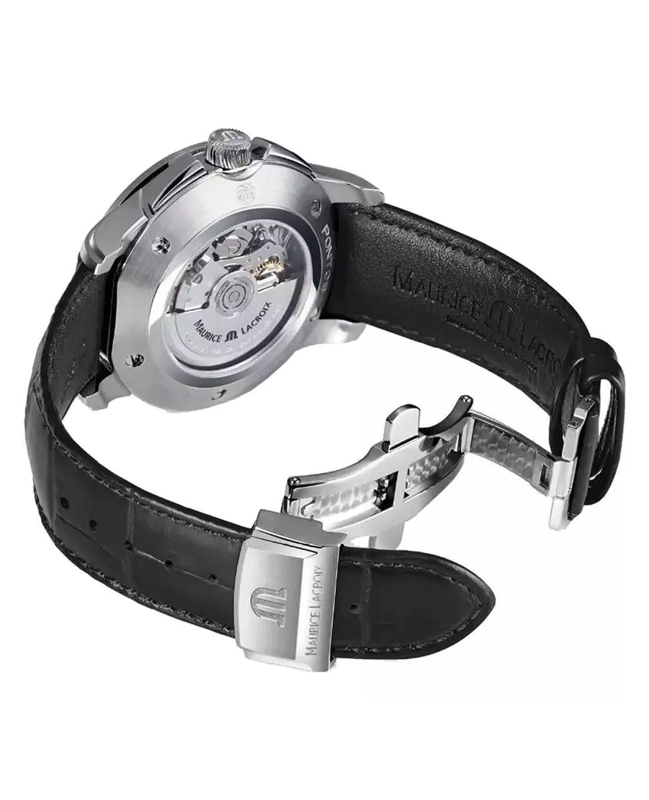 Мужские швейцарские часы Maurice Lacroix Pontos Day Date PT6358-SS001-230-2, механический механизм (автоматический калибр) с высокой точностью. Часы PONTOS являются образцом элегантности и утонченности и в то же время подтверждают нашу репутацию производителя доступных часов класса люкс.В механизме 26 камней, частота 28800 полуколебаний в час. Запас хода 38 часов. Сапфировое стеклоСапфировое стеклоПрочный и надёжный материал из кристалла сапфира синтетического происхождения, характеризующийся особой твёрдостью и устойчивостью к царапинам и повреждениям. устойчивое к появлению царапин, обладающее высокой прозрачностью. Корпус изготовлен из нержавеющей стали. Стрелки с люминесцентным покрытиемЛюминесцентное покрытиеПозволяет считывать показания времени в темноте. Производители наносят на стрелки, часовые индексы, безель или поверхность циферблата светонакопительный состав, дающий холодное свечение.. Окошко даты в положении 3 часов, окошда дня недели в положении 12 часов. Класс водозащиты: 100 метров, позволит плавать, нырять и заниматься другими водными видами спорта. Кожаный ремешок на застёжке-бабочке с кнопкамиЗастёжка "бабочка"Такой вид застёжки дополняется предохранителями, помогающими избежать случайного раскрытия браслета. Обладают изящным исполнением. .