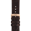 Кожаный ремешок коричневого цвета с классической застёжкой обеспечивает комфортное ношение и надёжную фиксацию. Водозащита до 3 ATM делает часы подходящими для случайных контактов с водой.