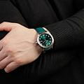 Мужские механические часы с автоподзаводом — это надёжный аксессуар от легендарного бренда «МОЛНИЯ», созданного на Челябинском часовом заводе. Корпус диаметром 44 мм и высотой 12 мм выполнен из нержавеющей стали 316L с матовой полировкой. БезельБезельВнешний ободок, закрепляющий стекло. В спортивных часах так называется поворотное кольцо с делениями на циферблате, выполняет роль таймера – замеряет отрезки времени на шкале. Неподвижный безель – элемент декора. Однонаправленно вращающийся безель на дайверских часах позволяет фиксировать моменты погружения и выныривания на поверхность. также выполнен из стали с матовой отделкой. Циферблат зелёного цвета матовый, оформлен стрелками и индексами с люминесцентным покрытиемЛюминесцентное покрытиеПозволяет считывать показания времени в темноте. Производители наносят на стрелки, часовые индексы, безель или поверхность циферблата светонакопительный состав, дающий холодное свечение. Super-LumiNova. Окошко даты расположено в положении 3 часов. Циферблат защищён сапфировым стекломСапфировое стеклоПрочный и надёжный материал из кристалла сапфира синтетического происхождения, характеризующийся особой твёрдостью и устойчивостью к царапинам и повреждениям. толщиной 1,5 мм. Механизм — японский автоматический калибр Miyota 8215 с функцией и запасом хода 42 часа. Часы оснащены кожаным ремешком зелёного цвета шириной 22 мм с классической пряжкой. Водонепроницаемость 100 м позволяет использовать часы для плавания и повседневного ношения. Идеальный выбор для тех, кто ценит российское качество и мужественный дизайн.