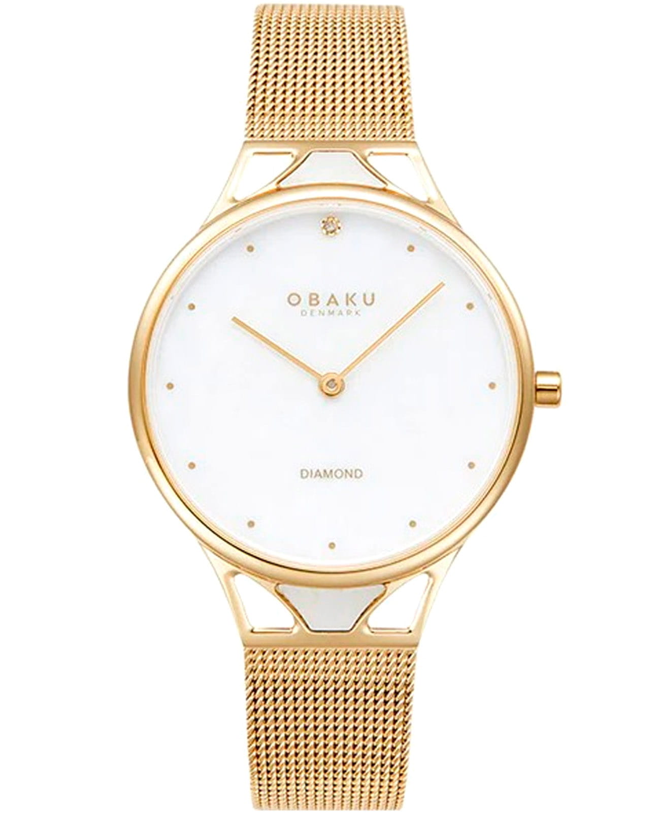 Женские наручные часы Obaku Diamond V302LXGWMG кварцевый механизм с высокой точностью, настоящее воплощение элегантности и утонченности. Их дизайн завораживает с первого взгляда, сочетая в себе классическую лаконичность и современные акценты. Сапфировое стеклоСапфировое стеклоПрочный и надёжный материал из кристалла сапфира синтетического происхождения, характеризующийся особой твёрдостью и устойчивостью к царапинам и повреждениям. защищает циферблат от царапин, обеспечивает отличную читаемость при любом освещении и устойчивое к мелким механическим повреждениям. Корпус выполнен из нержавеющей стали с IP-покрытиемIP-покрытиеМетод ионного напыления. Демонстрирует повышенную устойчивость к истиранию, окислению и химическим веществам. Под воздействием высокого давления и температуры около 1500°C молекулы металла надёжно соединяются с частицами корпуса часов. золотистого цвета идеально сбалансирован и элегантен. Класс водозащиты: 30 метров позволит защитить корпус от случайных брызг или капель дождя. Стальной браслет миланского плетения на раскладном замкеРаскладной замокДанный вариант застежки используется только на часах с металлическим браслетом. Отличительная особенность такого крепления в том, что длина браслета становится универсальной и вы можете самостоятельно отрегулировать нужный вам размер – застежка просто двигается по браслету часов. с IP-покрытиемIP-покрытиеМетод ионного напыления. Демонстрирует повышенную устойчивость к истиранию, окислению и химическим веществам. Под воздействием высокого давления и температуры около 1500°C молекулы металла надёжно соединяются с частицами корпуса часов.. Часы украшены бриллиантом на 12 часов, метки в виде точек. Центральные часовая и минутная стрелки. Obaku Diamond – это не просто аксессуар, это заявление о вашем безупречном вкусе и стремлении к совершенству.