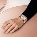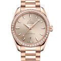 Omega Seamaster Aqua Terra выполнены в симметричном корпусе из полированного 18K Sedna™ золота с завинчивающейся задней крышкой, украшенной волновым узором. Безель инкрустирован бриллиантами, что добавляет модели роскошный акцент. Циферблат дополнен окошком даты на 6 часах, окаймлённым кольцом из 18K Sedna™ золота. Поверхность циферблата обработана методом CVD и имеет песочный оттенок с серыми вставками. Стрелки и метки выполнены из 18K Sedna™ золота и оснащены люминесцентным покрытиемЛюминесцентное покрытиеПозволяет считывать показания времени в темноте. Производители наносят на стрелки, часовые индексы, безель или поверхность циферблата светонакопительный состав, дающий холодное свечение. Super-LumiNova для лучшей читаемости в темноте. Индексы выполнены в форме корпусов парусников — деталь, подчёркивающая морское наследие коллекции. Калибр Omega 8801 сертифицирован как Master Chronometer — гарантия высочайшей точности и устойчивости к магнитным полям. Запас хода составляет 55 часов. Защиту циферблата обеспечивает сапфировое стеклоСапфировое стеклоПрочный и надёжный материал из кристалла сапфира синтетического происхождения, характеризующийся особой твёрдостью и устойчивостью к царапинам и повреждениям. с антибликовым покрытиемАнтибликовое покрытиеСлой оксида металла в 0,13-0,3 микрон, благодаря которому стекло часов не бликует и не отражает свет. Антибликовое покрытие уменьшает отражение света в 10 раз, обеспечивая отличную читаемость показателей циферблата. с обеих сторон. Водозащита позволяет использовать часы в воде без риска повреждения. Часы установлены на браслет из 18K Sedna™ золота с застёжкой-бабочкой с кнопкамиЗастёжка "бабочка"Такой вид застёжки дополняется предохранителями, помогающими избежать случайного раскрытия браслета. Обладают изящным исполнением. и закруглёнными звеньями. Это сочетание премиального качества, технологичности и классического дизайна.