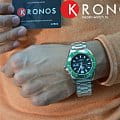 Чёрный циферблат с зелёным безелемБезельВнешний ободок, закрепляющий стекло. В спортивных часах так называется поворотное кольцо с делениями на циферблате, выполняет роль таймера – замеряет отрезки времени на шкале. Неподвижный безель – элемент декора. Однонаправленно вращающийся безель на дайверских часах позволяет фиксировать моменты погружения и выныривания на поверхность. не имеет лишних деталей. Японский автоматический калибр Orient 46943 имеет запас хода на 40 часов. Завинчивающаяся задняя крышка и заводная головка усиливают водостойкость в 200 метров. люминесцентная подсветкаЛюминесцентное покрытиеПозволяет считывать показания времени в темноте. Производители наносят на стрелки, часовые индексы, безель или поверхность циферблата светонакопительный состав, дающий холодное свечение. позволяет просматривать время и в темноте. На позиции 3 часов – окошко даты и дня недели.