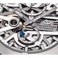 Частично скелетонизированный циферблат открывает вид на внутренний механизм, добавляя часам элемент технической изысканности. Верхняя пластина циферблата с контрастными индексами и текстурами создает эффект глубины, а секундная стрелка выделяется на фоне, подчеркивая динамичность дизайна. Стрелки часов оснащены люминесцентным покрытиемЛюминесцентное покрытиеПозволяет считывать показания времени в темноте. Производители наносят на стрелки, часовые индексы, безель или поверхность циферблата светонакопительный состав, дающий холодное свечение., обеспечивающим подсветку в темноте, что позволяет легко считывать время даже в условиях недостаточной освещенности.