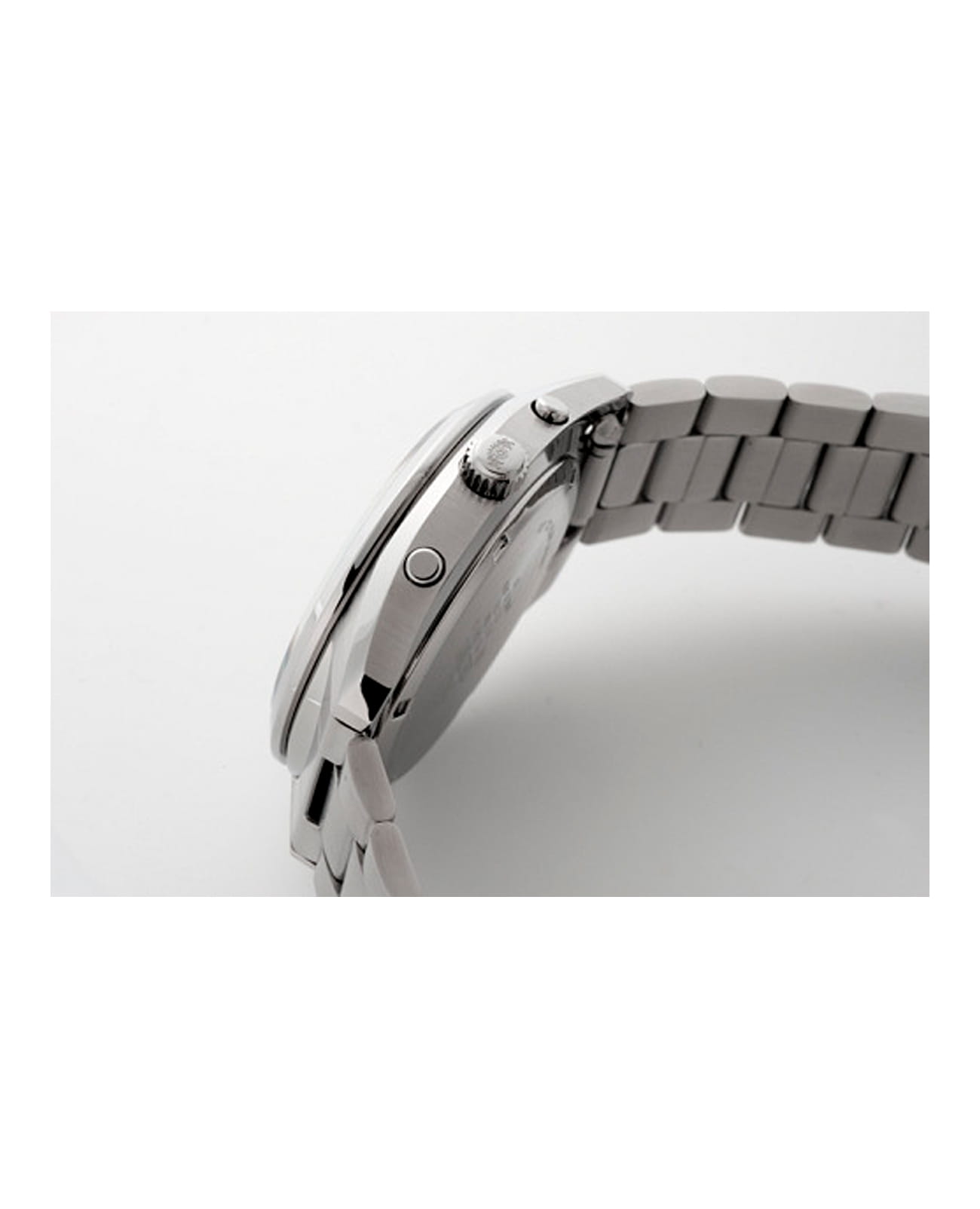 Ремешок выполнен из нержавеющей стали и оснащен раскладной застежкойРаскладная застёжкаТакой тип застёжки используется только на браслетах из металла. Она никогда не раскрывается полностью, происходит разделение на 2 и более частей. Раскладывающая застёжка снизит вероятность потери часов к минимуму., которая обеспечивает удобство и надежность при ношении.