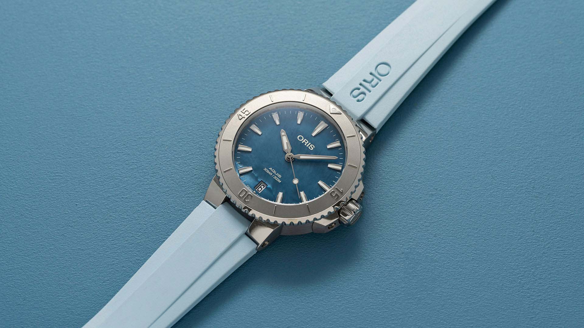 Швейцарские женские механические часы Oris Aquis Date 01 733 7770 4155-07 4 18 65FC