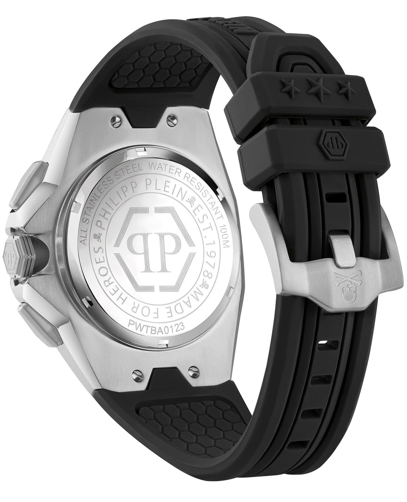 Мужские часы c хронографомХронографФункция позволяет измерять отрезки времени с особой точностью: часы, минуты, секунды. Верным признаком хронографа является наличие на циферблате 3 дополнительных окошек-счётчиков. Philipp Plein Octagon PWTBA0123, кварцевый механизм с высокой точностью. Класс водозащиты: 50 метров, позволит защитить корпус от случайных брызг или капель дождя. Корпус часов изготовлен из нержавеющей стали. Стрелки и метки с люминесцентным покрытиемЛюминесцентное покрытиеПозволяет считывать показания времени в темноте. Производители наносят на стрелки, часовые индексы, безель или поверхность циферблата светонакопительный состав, дающий холодное свечение.. 12 и 24-часовой формат времени. Минеральное стеклоМинеральное стеклоМинеральное стекло представляет собой искусственно выращенный минерал кварца. Такое стекло отличается особой устойчивостью к повреждениям и царапинам. Уступает по некоторым качествам сапфировому стеклу. устойчивое к мелким механическим повреждениям.