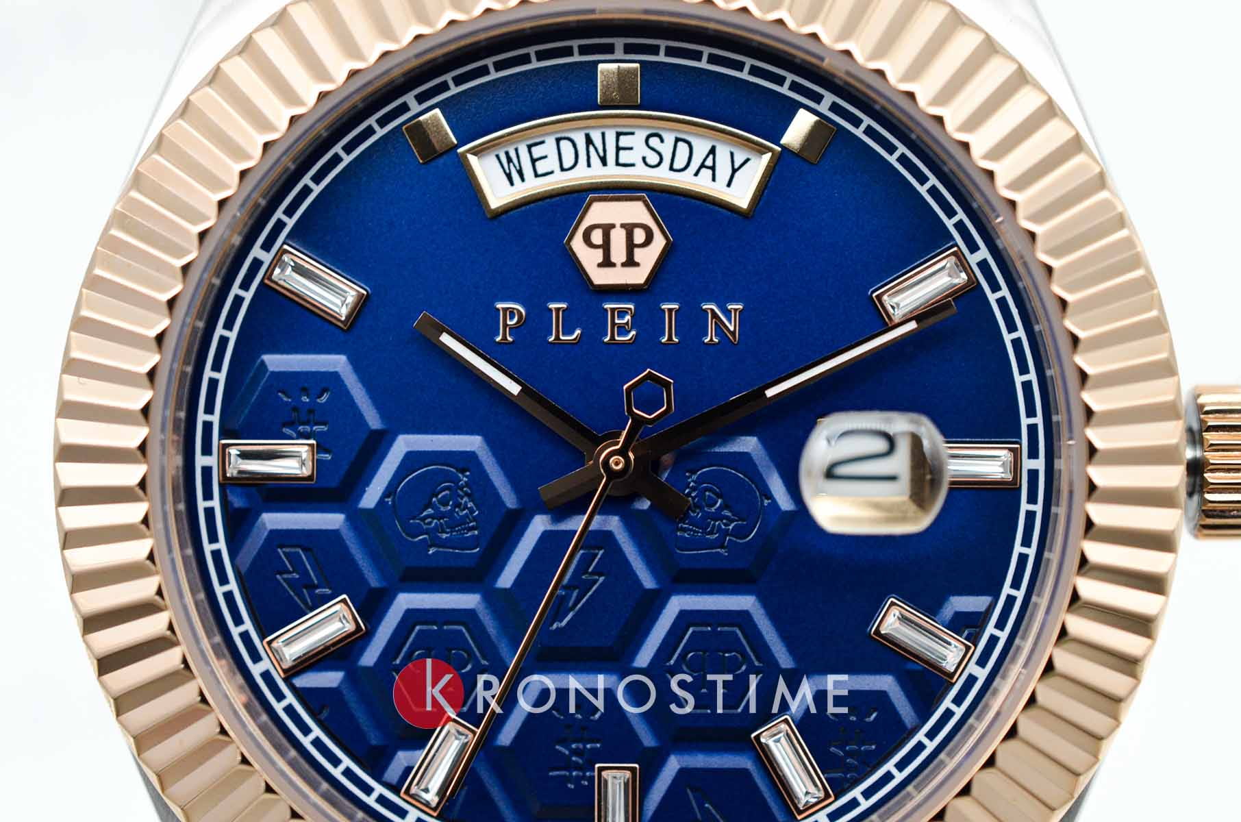 Мужские кварцевые часы Philipp Plein Date Superlative Gent PWPVA0524, кварцевый механизм с высокой точностью. Метки в виде штрихов. Минеральное стеклоМинеральное стеклоМинеральное стекло представляет собой искусственно выращенный минерал кварца. Такое стекло отличается особой устойчивостью к повреждениям и царапинам. Уступает по некоторым качествам сапфировому стеклу. устойчивое к мелким механическим повреждениям. Фирменная дизайнерская упаковка. БезельБезельВнешний ободок, закрепляющий стекло. В спортивных часах так называется поворотное кольцо с делениями на циферблате, выполняет роль таймера – замеряет отрезки времени на шкале. Неподвижный безель – элемент декора. Однонаправленно вращающийся безель на дайверских часах позволяет фиксировать моменты погружения и выныривания на поверхность. с IP-покрытиемIP-покрытиеМетод ионного напыления. Демонстрирует повышенную устойчивость к истиранию, окислению и химическим веществам. Под воздействием высокого давления и температуры около 1500°C молекулы металла надёжно соединяются с частицами корпуса часов.. Стрелки и метки с люминесцентным покрытиемЛюминесцентное покрытиеПозволяет считывать показания времени в темноте. Производители наносят на стрелки, часовые индексы, безель или поверхность циферблата светонакопительный состав, дающий холодное свечение.. Стальной браслет с частичным IP-покрытиемIP-покрытиеМетод ионного напыления. Демонстрирует повышенную устойчивость к истиранию, окислению и химическим веществам. Под воздействием высокого давления и температуры около 1500°C молекулы металла надёжно соединяются с частицами корпуса часов. на раскладной застёжкеРаскладная застёжкаТакой тип застёжки используется только на браслетах из металла. Она никогда не раскрывается полностью, происходит разделение на 2 и более частей. Раскладывающая застёжка снизит вероятность потери часов к минимуму.. Окошко дня недели находится в положении 12 часов.