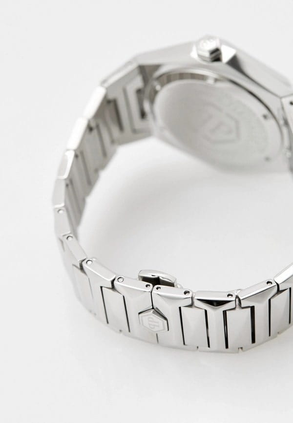 Philipp Plein The $kull Spikes PWPWA0624 — мужские кварцевые часы, сочетающие смелый дизайн и функциональность. Корпус диаметром 45 мм выполнен из нержавеющей стали что обеспечивает стильный внешний вид и долговечность. Минеральное стеклоМинеральное стеклоМинеральное стекло представляет собой искусственно выращенный минерал кварца. Такое стекло отличается особой устойчивостью к повреждениям и царапинам. Уступает по некоторым качествам сапфировому стеклу. защищает циферблат от царапин и повреждений. Чёрный циферблат с изображением черепа подчёркивает дерзкий дух бренда. Чёткие стрелки и индексы обеспечивают удобство считывания времени. Часы оснащены кварцевым механизмом, гарантирующим точность хода. Браслет выполнен из серебристой нержавеющей стали, что обеспечивает комфортное прилегание к запястью на застёжке-бабочке с кнопкамиЗастёжка "бабочка"Такой вид застёжки дополняется предохранителями, помогающими избежать случайного раскрытия браслета. Обладают изящным исполнением. и гарантирует надёжную фиксацию. Водозащита до 5 ATM (50 метров) делает часы подходящими для повседневного использования. Philipp Plein The $kull Spikes PWPWA0624 — это стильный аксессуар для мужчин, которые ценят уникальный дизайн и качество.
