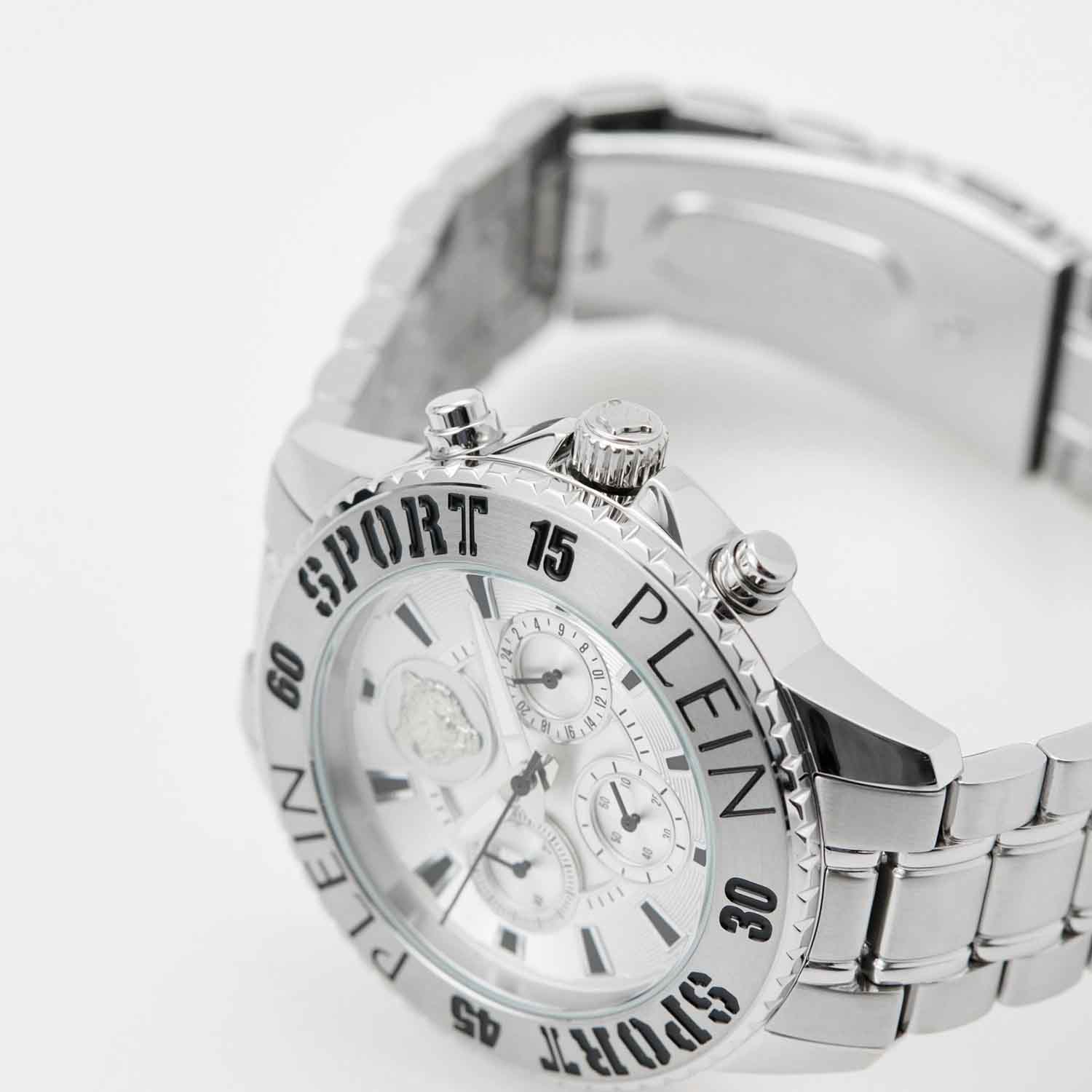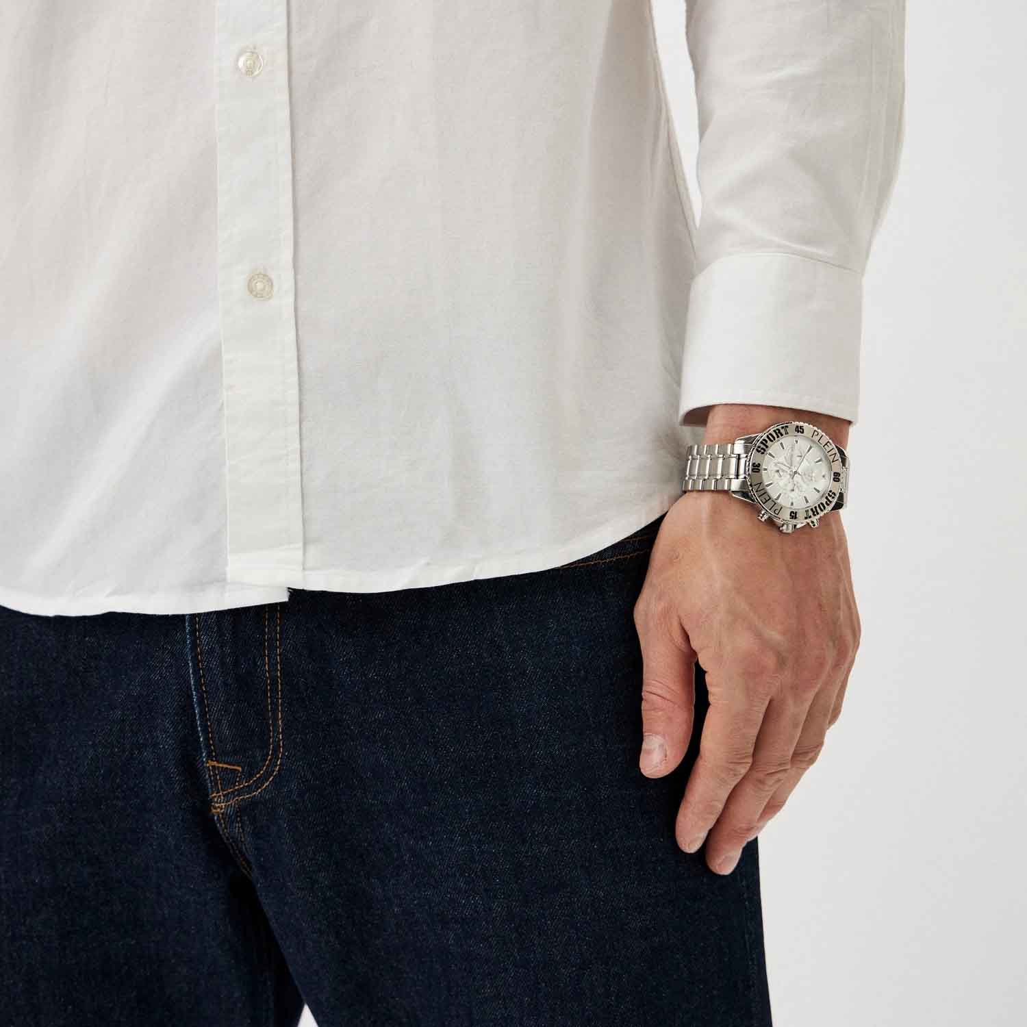 Дерзкий аксессуар со смелым, бунтарским дизайном будет с вами в любом приключении. Мужские кварцевые Plein Sport PSMEA0424 часы-хронографХронографФункция позволяет измерять отрезки времени с особой точностью: часы, минуты, секунды. Верным признаком хронографа является наличие на циферблате 3 дополнительных окошек-счётчиков.. Корпус и браслет часов изготовлены из стали. Циферблат дополнен паттерном ''след когтей''. Рифленая заводная головка с защитой. Класс водозащиты: 50 метров, позволит защитить корпус от случайных брызг или капель дождя.