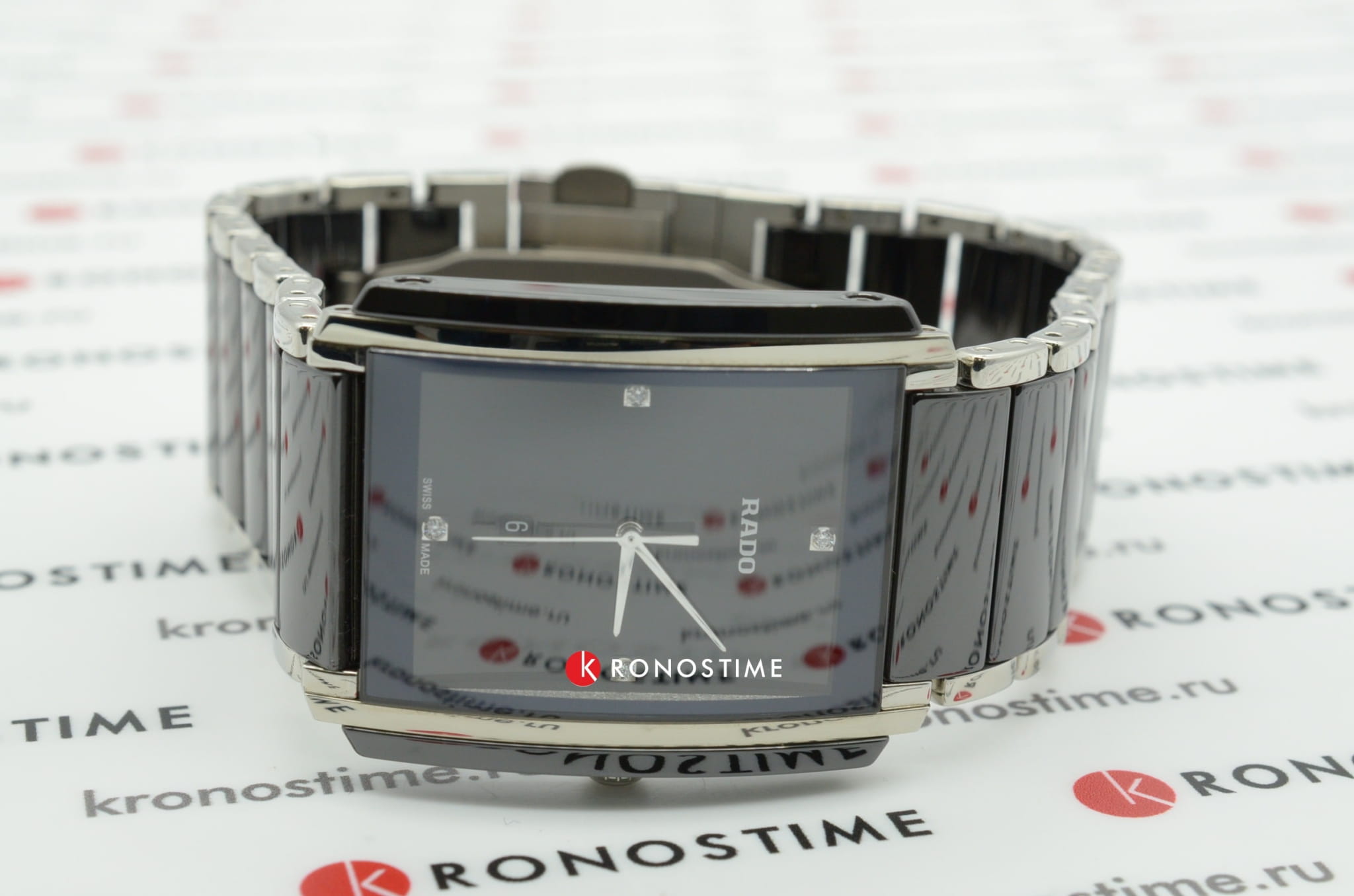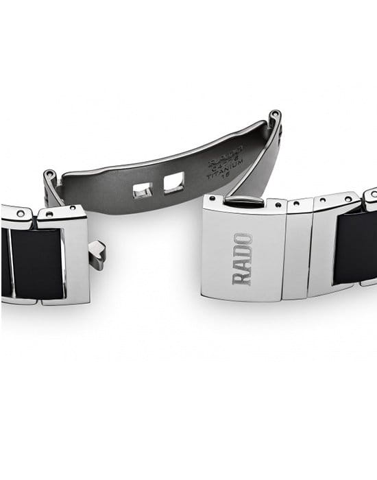 Браслет из высокотехнологичной чёрной керамикиВысокотехнологичная керамикаИнновационный запатентованный Rado материал с гладкой или матовой поверхностью. Керамика за счёт кристаллической структуры обладает повышенной устойчивостью от возникновения царапин. Материал способен принимать температуру тела человека, обеспечивая невероятный комфорт при ношении. и нержавеющей стали на застёжке-бабочке с кнопкамиЗастёжка "бабочка"Такой вид застёжки дополняется предохранителями, помогающими избежать случайного раскрытия браслета. Обладают изящным исполнением. обеспечивает комфортное и надёжное ношение.