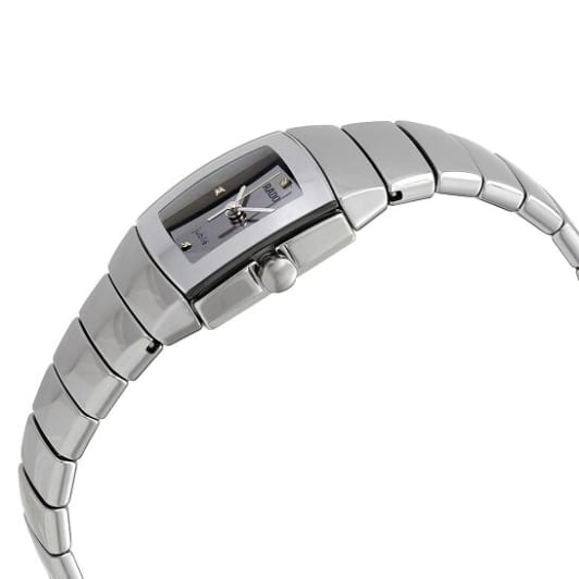 Часы Rado Sintra R13722702, произведение искусства и технологическое чудо, станут прекрасным дополнением к коллекции. Эти швейцарские часы оснащены кварцевым механизмом. Корпус изготовлен из высокотехнологичной керамикиВысокотехнологичная керамикаИнновационный запатентованный Rado материал с гладкой или матовой поверхностью. Керамика за счёт кристаллической структуры обладает повышенной устойчивостью от возникновения царапин. Материал способен принимать температуру тела человека, обеспечивая невероятный комфорт при ношении.. Браслет изготовлен из CeramosCeramosМатериал являет собой инновационное сочетание высокотехнологичной керамики и сплава металла. Он объединяет керамическую устойчивость к царапинам и металлический роскошный блеск. . Сапфировое стеклоСапфировое стеклоПрочный и надёжный материал из кристалла сапфира синтетического происхождения, характеризующийся особой твёрдостью и устойчивостью к царапинам и повреждениям. устойчивое к появлению царапин, обладающее высокой прозрачностью. Класс водозащиты: 30 метров, позволит защитить корпус от случайных брызг или капель дождя. Белые бриллианты (0,011 карата) в положении "3", "6", "9" и "12 часов".