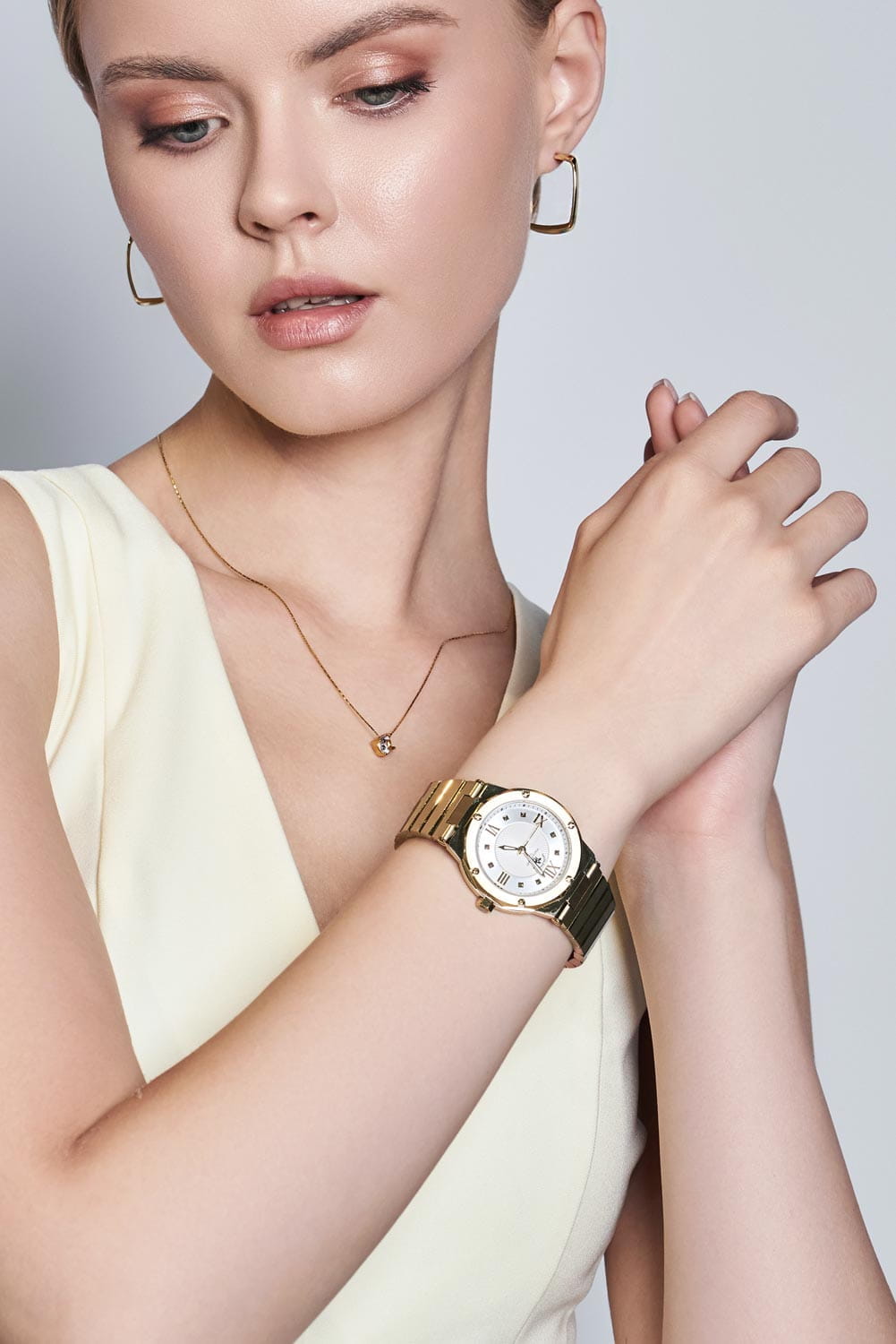 Женские кварцевые часы Santa Barbara Polo & Racquet Club — это стильный аксессуар, подчеркивающий индивидуальность. Корпус диаметром 36 мм выполнен из нержавеющей стали 316L с IP-покрытиемIP-покрытиеМетод ионного напыления. Демонстрирует повышенную устойчивость к истиранию, окислению и химическим веществам. Под воздействием высокого давления и температуры около 1500°C молекулы металла надёжно соединяются с частицами корпуса часов.. Циферблат серебристого цвета оформлен по технологии Sunray («солнечные лучи»), дополнен накладными метками в виде точек и римских цифр, а также фирменным логотипом. Стрелки заострённые, с люминесцентным покрытиемЛюминесцентное покрытиеПозволяет считывать показания времени в темноте. Производители наносят на стрелки, часовые индексы, безель или поверхность циферблата светонакопительный состав, дающий холодное свечение., обеспечивающим хорошую читаемость в темноте. Циферблат защищён минеральным стекломМинеральное стеклоМинеральное стекло представляет собой искусственно выращенный минерал кварца. Такое стекло отличается особой устойчивостью к повреждениям и царапинам. Уступает по некоторым качествам сапфировому стеклу.. Часы оснащены стальным браслетом с IP-покрытиемIP-покрытиеМетод ионного напыления. Демонстрирует повышенную устойчивость к истиранию, окислению и химическим веществам. Под воздействием высокого давления и температуры около 1500°C молекулы металла надёжно соединяются с частицами корпуса часов. и раскладной застёжкойРаскладная застёжкаТакой тип застёжки используется только на браслетах из металла. Она никогда не раскрывается полностью, происходит разделение на 2 и более частей. Раскладывающая застёжка снизит вероятность потери часов к минимуму.. Водонепроницаемость 30 м позволяет использовать часы в повседневных условиях. Идеальный выбор для тех, кто ценит элегантный дизайн и качество.