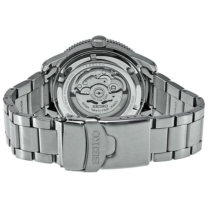 Современные японские наручные мужские часы. Механизм с автоподзаводом, калибр Seiko 4R36. Круглый корпус и браслет часов выполнены из высокопрочной стали с антикоррозийными свойствами. Черный фон циферблата с контрастными индексами. Водонепроницаемость 10 ATM. Минеральное стекло Hardlex, устойчивое к появлению царапин.
