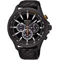 Успешные люди, желающие идти в ногу со временем, выбирают инновационные и надежные часы марки Seiko. Механизм работает от солнечной батареи, калибр V175. Корпус выполнен из нержавеющей стали с антикоррозийными свойствами с PVD покрытием. Черный циферблат с контрастными элементами дизайна. Минеральное стекло повышенной прочности Hardlex, устойчиво к царапинам. Часы удерживаются ремешком из натуральной кожи черного цвета. Водонепрницаемость 100м. Часы оснащены хронографом.