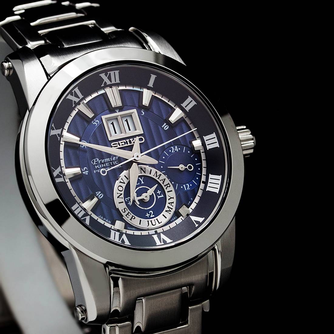 Часы оснащены автокварцевым механизмом Seiko Kinetic калибра 7D56, который преобразует энергию движения в электрическую, обеспечивая точный ход и запас хода до 4 лет в режиме ожидания. Функция вечного календаряВечный календарьКлассическое часовое усложнение, представляющее собой календарь, рассчитанный на несколько лет вперёд (стандартно – до 2099 года). Определяет текущую дату, день недели, месяц. автоматически корректирует дату до 2100 года, включая високосные годы. Циферблат защищён сапфировым стекломСапфировое стеклоПрочный и надёжный материал из кристалла сапфира синтетического происхождения, характеризующийся особой твёрдостью и устойчивостью к царапинам и повреждениям. с антибликовым покрытиемАнтибликовое покрытиеСлой оксида металла в 0,13-0,3 микрон, благодаря которому стекло часов не бликует и не отражает свет. Антибликовое покрытие уменьшает отражение света в 10 раз, обеспечивая отличную читаемость показателей циферблата., устойчивым к царапинам. Установлена раскладная застёжкаРаскладная застёжкаТакой тип застёжки используется только на браслетах из металла. Она никогда не раскрывается полностью, происходит разделение на 2 и более частей. Раскладывающая застёжка снизит вероятность потери часов к минимуму. с тройным сгибом и кнопкой освобождения. Модель обладает водонепроницаемостью до 100 метров, что делает её подходящей для плавания и сноркелинга.