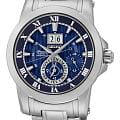 Модель Seiko SNP113J1 из коллекции Premier сочетает в себе элегантный дизайн и передовые технологии. Корпус и браслет выполнены из нержавеющей стали, подчёркивая прочность и элегантность конструкции. Синий циферблат с римскими цифрами и метками, покрытыми люминесцентным покрытиемЛюминесцентное покрытиеПозволяет считывать показания времени в темноте. Производители наносят на стрелки, часовые индексы, безель или поверхность циферблата светонакопительный состав, дающий холодное свечение., обеспечивает отличную читаемость в любых условиях.