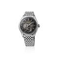 Механические часы Seiko Presage Classic SPB471 — это сочетание японского мастерства, технологичности и эстетики. Серия вдохновлена цветами и текстурами традиционных японских ремёсел, что нашло своё отражение в изысканном дизайне и высокой функциональности модели. Часы оснащены калибром 6R5J — надёжным механизмом с автоподзаводом и возможностью ручной подзаводки. Механизм работает на частоте 21 600 полуколебаний в час, имеет 24 драгоценных камня и обеспечивает запас хода до 72 часов. Также реализована функция стоп-секунды для точной установки времени и защита от магнитных полей до 4800 А/м. Через прозрачное окошко на циферблате можно наблюдать за работой механизма, а также отслеживать время в двух форматах — 12-часовом и 24-часовом. Циферблат чёрного цвета выполнен в стиле «широ-иро» — в оттенке неотбелённого шелка, который при разном освещении играет глубокими переливами. Его поверхность украшена тонкой текстурой, создающей ощущение благородства и изысканности. Метки выполнены в виде аккуратных штрихов, а центральные стрелки обеспечивают чёткость и лёгкость считывания информации. Защиту циферблата обеспечивает сапфировое стеклоСапфировое стеклоПрочный и надёжный материал из кристалла сапфира синтетического происхождения, характеризующийся особой твёрдостью и устойчивостью к царапинам и повреждениям. выпуклой формы с антибликовым покрытием с обеих сторон. Корпус изготовлен из нержавеющей стали, а задняя крышка — завинчивающаяся и прозрачная, что позволяет рассмотреть детали работы механизма. Браслет выполнен из стали и оснащён трёхсгибной раскладной застёжкойРаскладная застёжкаТакой тип застёжки используется только на браслетах из металла. Она никогда не раскрывается полностью, происходит разделение на 2 и более частей. Раскладывающая застёжка снизит вероятность потери часов к минимуму., обеспечивающей комфорт и уверенную фиксацию на запястье. Часы водонепроницаемы до 100 метров , что позволяет использовать их при плавании или занятиях водными видами спорта без глубокого погружения. Эти часы станут универсальным аксессуаром для тех, кто ценит сочетание культурного наследия, технологий и эстетики — идеальный выбор для повседневной носки и торжественных случаев.