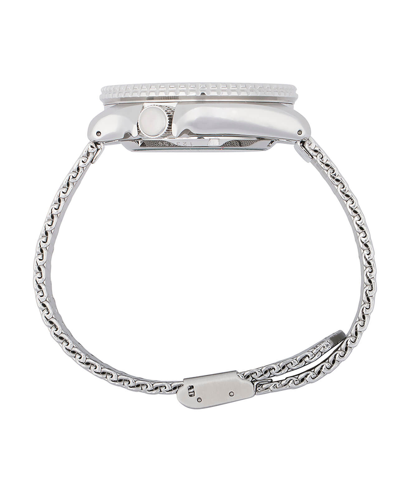 Водозащита 100 метров (10 атм) позволяет использовать часы для плавания и других водных видов спорта. Стальной браслет с миланским плетением и раскладной застёжкойРаскладная застёжкаТакой тип застёжки используется только на браслетах из металла. Она никогда не раскрывается полностью, происходит разделение на 2 и более частей. Раскладывающая застёжка снизит вероятность потери часов к минимуму. обеспечивает комфортное ношение и надёжную фиксацию на запястье. ​​