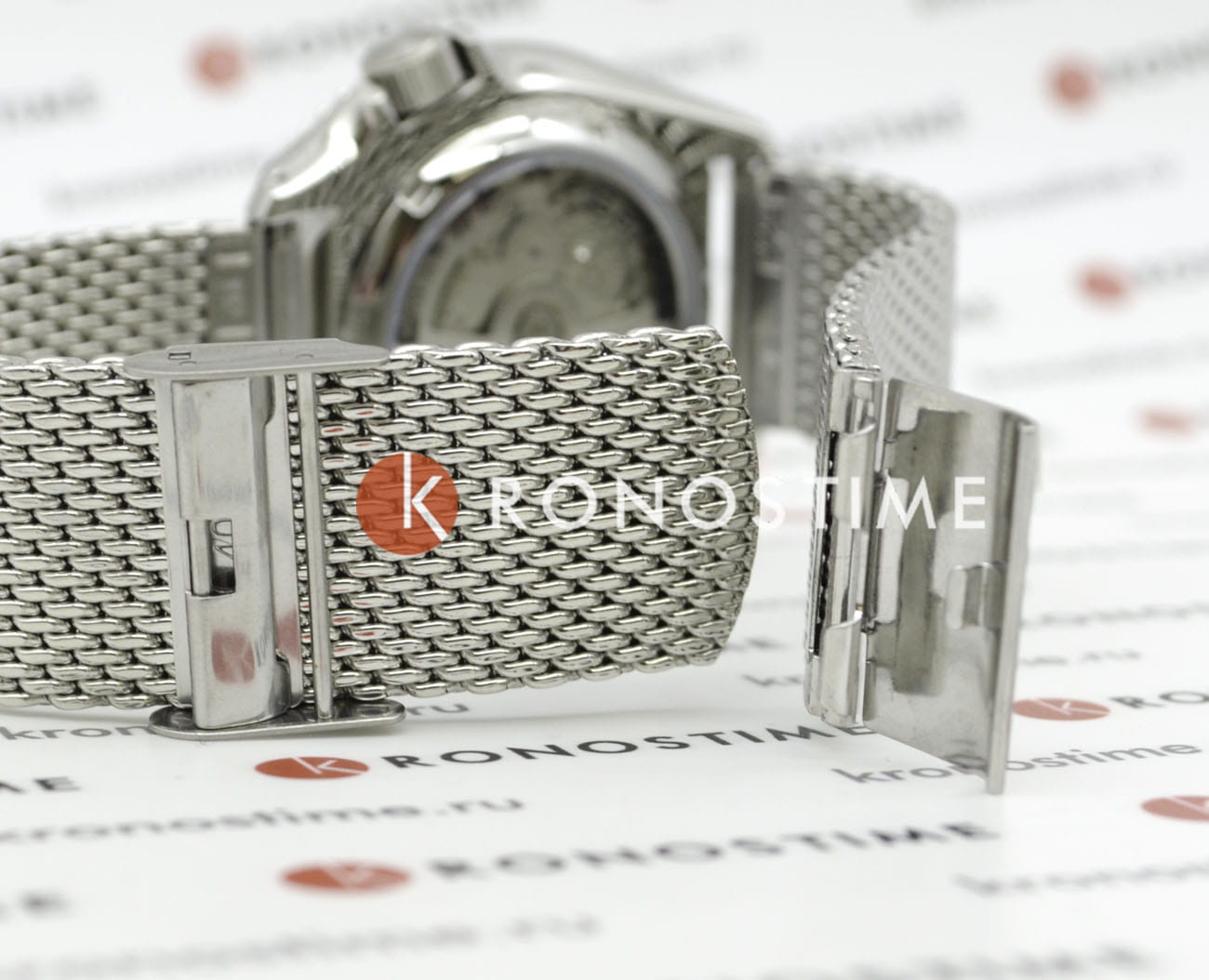 Водозащита 100 метров (10 атм) позволяет использовать часы для плавания и других водных видов спорта. Стальной браслет с миланским плетением и раскладной застёжкой раскладной застёжкойРаскладная застёжкаТакой тип застёжки используется только на браслетах из металла. Она никогда не раскрывается полностью, происходит разделение на 2 и более частей. Раскладывающая застёжка снизит вероятность потери часов к минимуму. обеспечивает комфортное ношение и надёжную фиксацию на запястье.