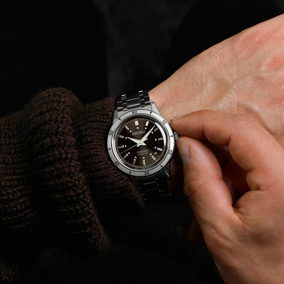 Мужские наручные часы Seiko SRPL09J1 из коллекции Presage Style 60s сочетают в себе классический дизайн и надежность современных технологий. Модель обладает круглым корпусом диаметром 40 мм, изготовленным из нержавеющей стали, что обеспечивает высокую устойчивость к внешним воздействиям . Толщина корпуса составляет 12 мм, а для защиты используется минеральное стеклоМинеральное стеклоМинеральное стекло представляет собой искусственно выращенный минерал кварца. Такое стекло отличается особой устойчивостью к повреждениям и царапинам. Уступает по некоторым качествам сапфировому стеклу. Hardlex Crystal, обеспечивающее прочную защиту от царапин. Браслет также выполнен из нержавеющей стали с раскладной застежкойРаскладная застёжкаТакой тип застёжки используется только на браслетах из металла. Она никогда не раскрывается полностью, происходит разделение на 2 и более частей. Раскладывающая застёжка снизит вероятность потери часов к минимуму., гарантирующей комфортное ношение . Циферблат черного цвета украшен текстурой, которая подчеркивает элегантный стиль модели. Часы оснащены функцией отображения даты на позиции между «4 и 5 часами» . Модель работает на автоматическом механизме с калибром 4R35, который включает 23 камня и обладает запасом хода до 41 часа . Водонепроницаемость составляет WR 50, что позволяет защитить корпус от случайных брызг и кратковременного контакта с водой . Вдохновленные культурой 1960-х годов, эти часы демонстрируют уникальный стиль и внимание к деталям, сохраняя при этом практичность для повседневного использования.