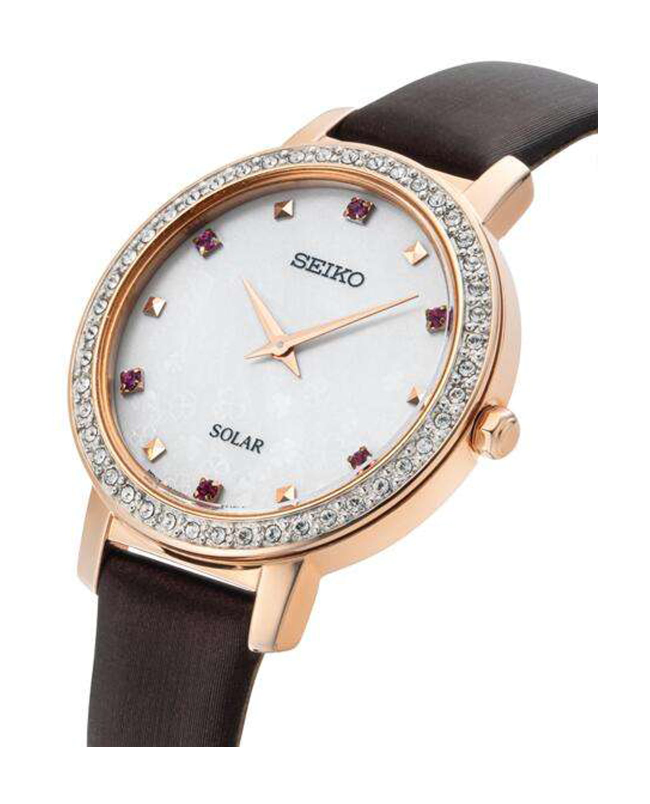 Женские японские часы с солнечной батареей Seiko Conceptual Series Dress SUP450P1, кварцевый механизм с высокой точностью. Класс водозащиты: 30 метров, позволит защитить корпус от случайных брызг или капель дождя. Корпус часов изготовлен из стали, золотистого цвета.