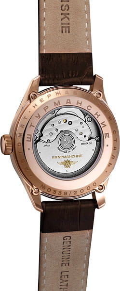 Мужские российские механические часы с минеральным стекломМинеральное стеклоМинеральное стекло представляет собой искусственно выращенный минерал кварца. Такое стекло отличается особой устойчивостью к повреждениям и царапинам. Уступает по некоторым качествам сапфировому стеклу. Штурманские Гагарин 9015/1279573, механизм с высокой точностью. Класс водозащиты: 50 метров, позволит защитить корпус от случайных брызг или капель дождя. Корпус часов изготовлен из стали с PVD-покрытиемPVDУльтратонкое покрытие наносится в технике вакуумного напыления, сочетает в себе нитрид титана особой прочности со слоем золота или оксида хрома. Несёт в себе декоративную или защитную функцию.. Кожаный ремешок на стандартной застёжке. Стрелки и метки с люминесцентным покрытиемЛюминесцентное покрытиеПозволяет считывать показания времени в темноте. Производители наносят на стрелки, часовые индексы, безель или поверхность циферблата светонакопительный состав, дающий холодное свечение.. Калибр Miyota 9015. В механизме 24 камня, частота 28800 полуколебаний в час. Запас хода 42 часа. Апертура даты.