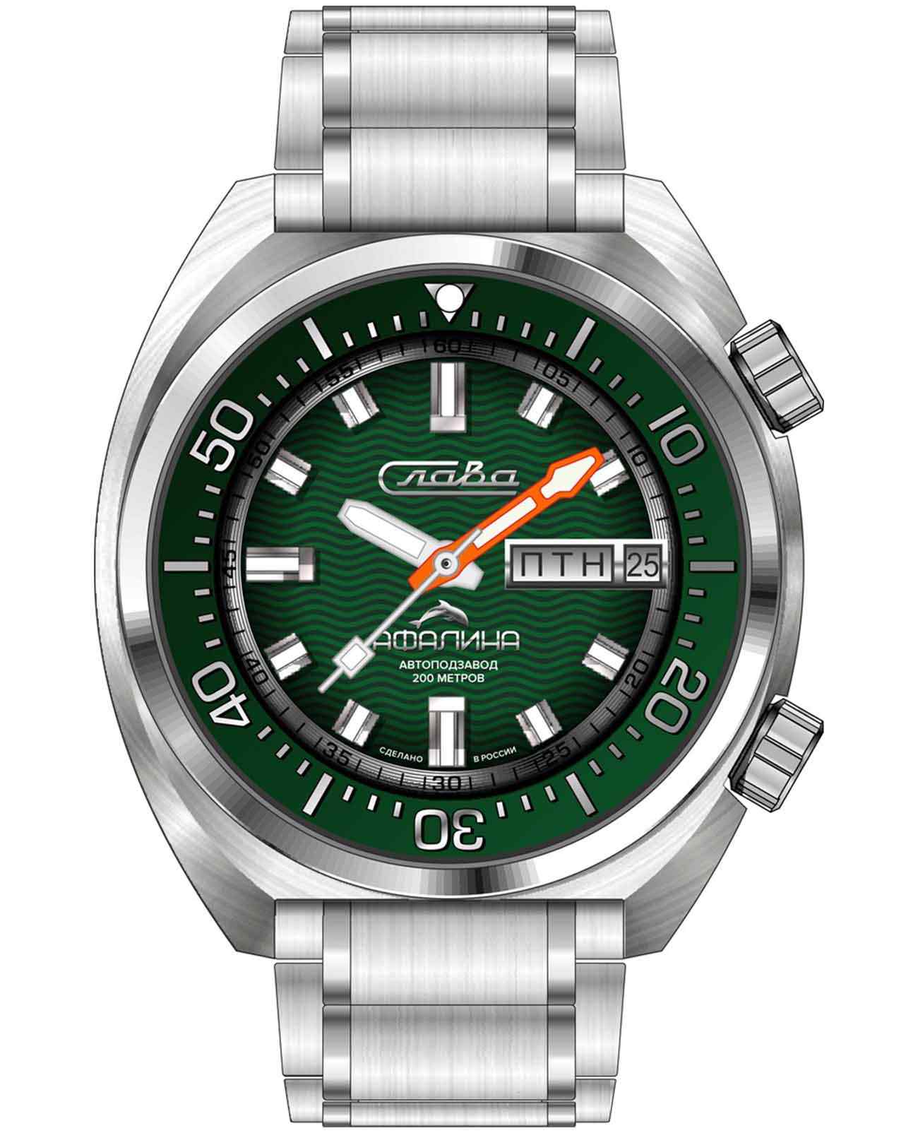 Коллекционные часы Слава Афалина 2430516/100-2427 — это превосходный выбор для тех, кто ценит стиль и функциональность. Модель из лимитированной серии, состоящей всего из 500 экземпляров, отличается прочным стальным корпусом и предназначена для любителей дайвинга. Часы оснащены надежным механическим механизмом с автоподзаводом и водозащитой до 200 метров, что делает их идеальными для подводных приключений. Зеленый циферблат дополняется стрелками с люминесцентным покрытиемЛюминесцентное покрытиеПозволяет считывать показания времени в темноте. Производители наносят на стрелки, часовые индексы, безель или поверхность циферблата светонакопительный состав, дающий холодное свечение. для отличной видимости в условиях низкой освещенности, а сапфировое стеклоСапфировое стеклоПрочный и надёжный материал из кристалла сапфира синтетического происхождения, характеризующийся особой твёрдостью и устойчивостью к царапинам и повреждениям. с антибликовым покрытиемАнтибликовое покрытиеСлой оксида металла в 0,13-0,3 микрон, благодаря которому стекло часов не бликует и не отражает свет. Антибликовое покрытие уменьшает отражение света в 10 раз, обеспечивая отличную читаемость показателей циферблата. защищает от царапин и бликов. Основная заводная головка расположена на корпусе ближе к отметке ''4 часа'', она позволяет настраивать время и заводить часы перед погружением. С помощью второй головки, расположенной у отметки ''2 часа'', можно управлять вращающимся внутренним кольцом безеляБезельВнешний ободок, закрепляющий стекло. В спортивных часах так называется поворотное кольцо с делениями на циферблате, выполняет роль таймера – замеряет отрезки времени на шкале. Неподвижный безель – элемент декора. Однонаправленно вращающийся безель на дайверских часах позволяет фиксировать моменты погружения и выныривания на поверхность. с PVDPVDУльтратонкое покрытие наносится в технике вакуумного напыления, сочетает в себе нитрид титана особой прочности со слоем золота или оксида хрома. Несёт в себе декоративную или защитную функцию. покрытием зеленого цвета и фиксировать его в нужном положении. Окошко даты и дня недели удобно расположено на отметке "3 часа", а профессиональная "дайвинг-застежка" стального браслета имеет удлинение для гидрокостюма. Особая забота о природе: часть средств от продажи данной модели перечисляется в центр спасения дельфинов "Дельфа". Часы серии "Афалина" — это не только функциональный аксессуар, но и символ вашей поддержки благородного дела.