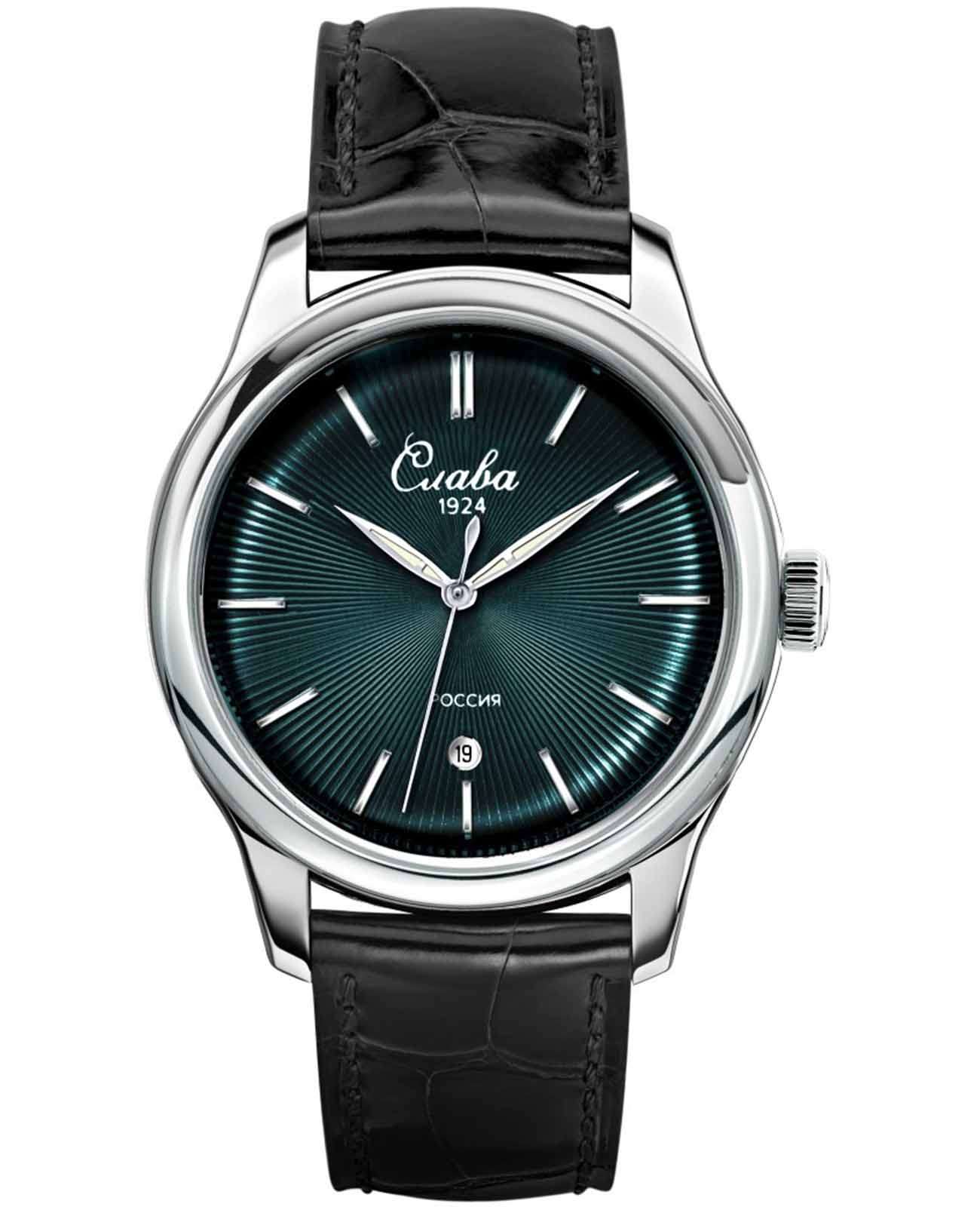 Российские наручные часы Слава Сенат 2490538/300-2115 станут отличным дополнением к вашему образу и идеальным выбором для тех, кто ценит стиль, комфорт и надежность. Эти часы оснащены японским кварцевым механизмом Miyota 2115, что гарантирует их точность и долговечность. Корпус часов диаметром 38 мм и толщиной 11 мм выполнен из прочной стали, а зеленый циферблат с изящными метками защищен сапфировым стекломСапфировое стеклоПрочный и надёжный материал из кристалла сапфира синтетического происхождения, характеризующийся особой твёрдостью и устойчивостью к царапинам и повреждениям., устойчивым к царапинам. Окошко календаря, расположенное в положении 6 часов, добавляет функциональности и удобства в повседневном использовании. Стрелки с люминесцентным покрытиемЛюминесцентное покрытиеПозволяет считывать показания времени в темноте. Производители наносят на стрелки, часовые индексы, безель или поверхность циферблата светонакопительный состав, дающий холодное свечение., что облегчает чтение времени даже в условиях слабого освещения. Эти часы обладают водозащитой 50WR, что позволяет не переживать за их сохранность в условиях повышенной влажности. Завершает образ кожаный ремешок с классической застежкой, обеспечивающий комфортную посадку на запястье.