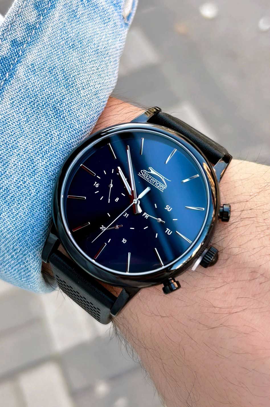 Slazenger SL.09.2030.2.02 – стильные мужские часы, сочетающие современный дизайн и функциональность. Корпус, выполненный из суперметалла с PVD-покрытиемPVDУльтратонкое покрытие наносится в технике вакуумного напыления, сочетает в себе нитрид титана особой прочности со слоем золота или оксида хрома. Несёт в себе декоративную или защитную функцию., обеспечивает прочность и долговечность, а циферблат придаёт модели элегантный вид; он защищён минеральным стекломМинеральное стеклоМинеральное стекло представляет собой искусственно выращенный минерал кварца. Такое стекло отличается особой устойчивостью к повреждениям и царапинам. Уступает по некоторым качествам сапфировому стеклу., устойчивым к царапинам, что гарантирует сохранение идеального внешнего вида при активном использовании. Часы оснащены точным кварцевым механизмом, обеспечивающим стабильное отображение времени. Ремешок из натуральной кожи дополнен стандартной классической застёжкой, которая обеспечивает комфортное ношение и надёжную фиксацию на запястье. Водозащита до 50 метров (5 ATM) делает модель отличным выбором для повседневного использования, защищая часы от случайных брызг и дождя.