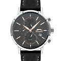 Мужские наручные часы с минеральным стекломМинеральное стеклоМинеральное стекло представляет собой искусственно выращенный минерал кварца. Такое стекло отличается особой устойчивостью к повреждениям и царапинам. Уступает по некоторым качествам сапфировому стеклу. Slazenger SL.09.2076.2.01 сочетают в себе классический дизайн и функциональность современных технологий. Модель обладает круглым корпусом диаметром 44 мм, изготовленным из суперметалла, что обеспечивает высокую устойчивость к внешним воздействиям. Ремешок выполнен из кожи с классической застежкой, гарантирующей комфортное ношение и безопасность. Серый циферблат оснащен окнами для отображения второго часового пояса, дня недели и текущего времени в 24-х часовом формате. Стрелки с люминесцентным покрытиемЛюминесцентное покрытиеПозволяет считывать показания времени в темноте. Производители наносят на стрелки, часовые индексы, безель или поверхность циферблата светонакопительный состав, дающий холодное свечение.. Часы работают на кварцевом механизме, что гарантирует точное время без необходимости подзаводки. Модель также имеет класс водонепроницаемости WR50 (5 атм), что позволяет использовать их во время плавания без ныряния.
