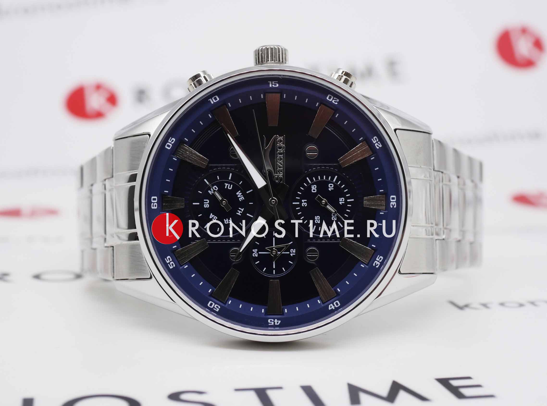 Мужские наручные часы Slazenger SL.09.2118.2.01 сочетают в себе классический дизайн и надежность современных технологий. Модель обладает круглым корпусом диаметром 46 мм, изготовленным из суперметалла, что обеспечивает высокую устойчивость к внешним воздействиям. Браслет выполнен из стали с раскладной застежкойРаскладной замокДанный вариант застежки используется только на часах с металлическим браслетом. Отличительная особенность такого крепления в том, что длина браслета становится универсальной и вы можете самостоятельно отрегулировать нужный вам размер – застежка просто двигается по браслету часов., гарантирующей комфортное ношение и безопасность. Циферблат темно-синего цвета декорирован стрелками, которые обеспечивают читаемость времени даже в условиях недостаточной освещенности. Для защиты используется минеральное стеклоМинеральное стеклоМинеральное стекло представляет собой искусственно выращенный минерал кварца. Такое стекло отличается особой устойчивостью к повреждениям и царапинам. Уступает по некоторым качествам сапфировому стеклу., обеспечивающее прочную защиту от царапин. Часы работают на японском кварцевом механизме, что гарантирует точное время без необходимости подзаводки. Модель также оснащена дополнительными отображениями на малых циферблатах даты, дня недели и текущего времени в 24-часовом формате, делая ее практичной для повседневного использования. Водонепроницаемость часов достигает 5 атмосфер (WR50), что позволяет использовать их во время плавания, однако не рекомендуется для дайвинга или других водных видов спорта. Вес модели составляет 155 грамм .