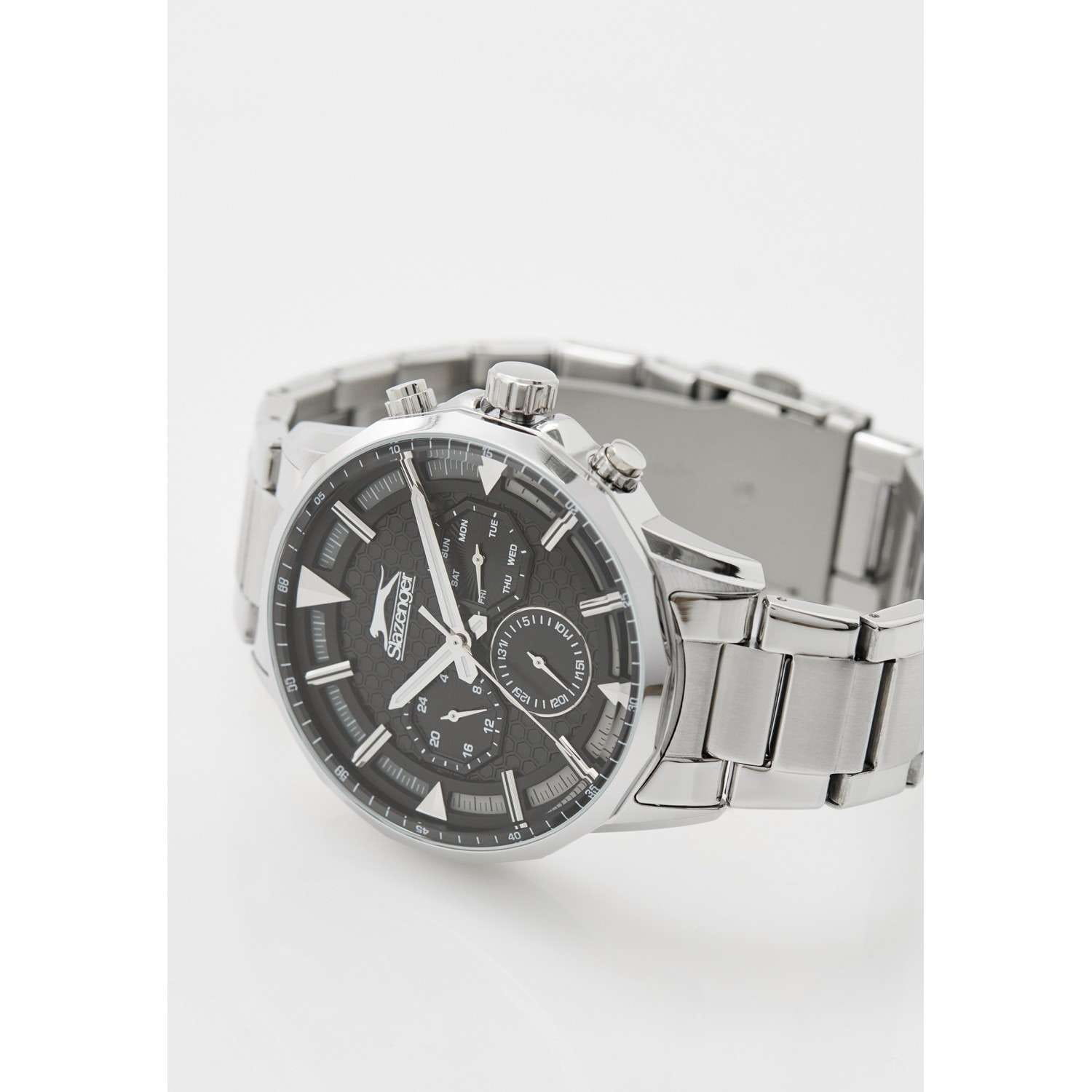 Стильные мужские наручные часы Slazenger SL.09.2216.2.01 станут идеальным аксессуаром для современного мужчины. Этот британский бренд славится своим качеством и надежностью, а данная модель не является исключением. Часы оснащены кварцевым механизмом, что обеспечивает точность хода и долговечность использования. Корпус часов выполнен из металла, а прочное минеральное стеклоМинеральное стеклоМинеральное стекло представляет собой искусственно выращенный минерал кварца. Такое стекло отличается особой устойчивостью к повреждениям и царапинам. Уступает по некоторым качествам сапфировому стеклу. защищает циферблат от царапин и повреждений. Элегантный металлический браслет серебристого цвета снабжен удобной раскладной застёжкойРаскладная застёжкаТакой тип застёжки используется только на браслетах из металла. Она никогда не раскрывается полностью, происходит разделение на 2 и более частей. Раскладывающая застёжка снизит вероятность потери часов к минимуму., что гарантирует комфортное ношение на запястье. Ширина браслета составляет 22 мм, что придает часам солидный вид. Диаметр корпуса равен 45 мм, а толщина 12 мм, что делает эту модель заметной, но в то же время не громоздкой. Водозащита уровня WR 50 позволяет использовать часы в повседневной жизни, не беспокоясь о случайных попаданиях воды. Стрелки снабжены люминесцентным покрытиемЛюминесцентное покрытиеПозволяет считывать показания времени в темноте. Производители наносят на стрелки, часовые индексы, безель или поверхность циферблата светонакопительный состав, дающий холодное свечение., что позволяет легко считывать время в темноте. Функциональные возможности часов включают отображение даты, дня недели и времени в 24-часовом формате на дополнительных малых циферблатах. Это делает модель не только стильной, но и практичной в использовании.