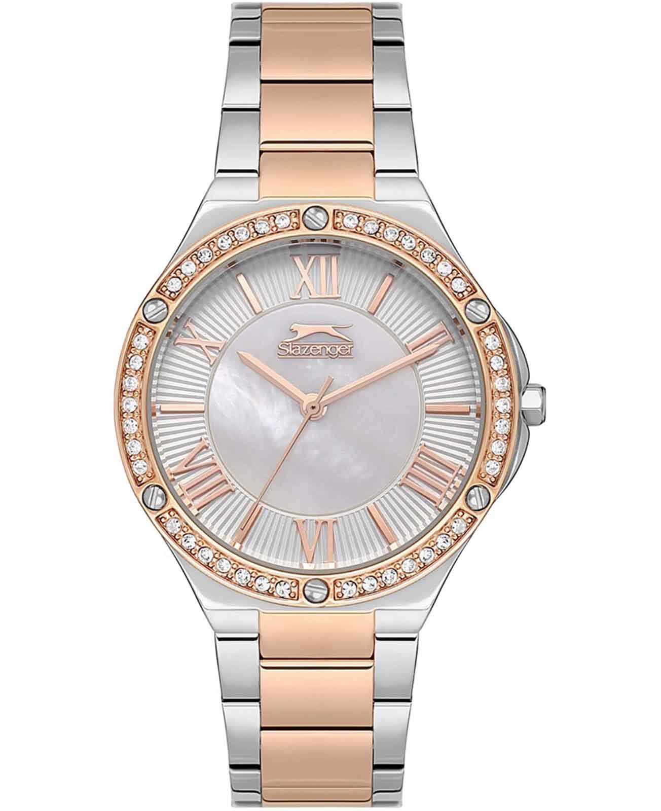 Часы Slazenger SL.09.2225.3.02 — это изысканный аксессуар, который подчеркнёт ваш стиль и индивидуальность. Модель оснащена надёжным кварцевым механизмом, обеспечивающим точность хода. Корпус из прочного металла диаметром 35 мм, а безельБезельВнешний ободок, закрепляющий стекло. В спортивных часах так называется поворотное кольцо с делениями на циферблате, выполняет роль таймера – замеряет отрезки времени на шкале. Неподвижный безель – элемент декора. Однонаправленно вращающийся безель на дайверских часах позволяет фиксировать моменты погружения и выныривания на поверхность. с розово-золотистым IP-покрытиемIP-покрытиеМетод ионного напыления. Демонстрирует повышенную устойчивость к истиранию, окислению и химическим веществам. Под воздействием высокого давления и температуры около 1500°C молекулы металла надёжно соединяются с частицами корпуса часов. украшен сияющими кристаллами. Перламутровый циферблат придаёт часам особый шарм. Металлический серебристый браслет с частичным розово-золотистым IP-покрытиемIP-покрытиеМетод ионного напыления. Демонстрирует повышенную устойчивость к истиранию, окислению и химическим веществам. Под воздействием высокого давления и температуры около 1500°C молекулы металла надёжно соединяются с частицами корпуса часов. с удобной раскладной застёжкойРаскладная застёжкаТакой тип застёжки используется только на браслетах из металла. Она никогда не раскрывается полностью, происходит разделение на 2 и более частей. Раскладывающая застёжка снизит вероятность потери часов к минимуму. гармонично дополняет изящный дизайн. Минеральное стеклоМинеральное стеклоМинеральное стекло представляет собой искусственно выращенный минерал кварца. Такое стекло отличается особой устойчивостью к повреждениям и царапинам. Уступает по некоторым качествам сапфировому стеклу. защищает циферблат от царапин, а водозащита уровня WR 30 позволяет не беспокоиться о случайных каплях воды. Заводная головка оснащена специальной защитой. Эти часы станут прекрасным выбором для тех, кто ценит сочетание элегантности и функциональности.