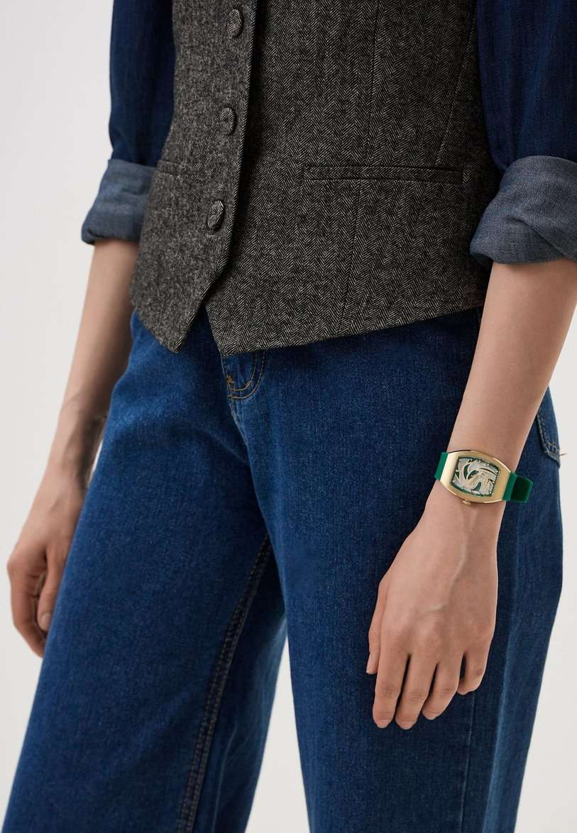 Часы Slazenger SL.09.2226.3.02 — это стильное сочетание современного дизайна и практичности. Модель оснащена надёжным кварцевым механизмом, благодаря чему отличается высокой точностью хода. Корпус часов выполнен из металла с IP-покрытиемIP-покрытиеМетод ионного напыления. Демонстрирует повышенную устойчивость к истиранию, окислению и химическим веществам. Под воздействием высокого давления и температуры около 1500°C молекулы металла надёжно соединяются с частицами корпуса часов. в оригинальной бочкообразной форме, задняя крышка закреплена на винтах для дополнительной прочности. Минеральное стеклоМинеральное стеклоМинеральное стекло представляет собой искусственно выращенный минерал кварца. Такое стекло отличается особой устойчивостью к повреждениям и царапинам. Уступает по некоторым качествам сапфировому стеклу. защищает циферблат от царапин, а водозащита уровня WR 30 позволяет не беспокоиться о попадании брызг. Особое внимание привлекает ремешок зелёного цвета из прочной резины с классической застёжкой, который обеспечивает комфортное ношение в течение всего дня. Стрелки и метки снабжены люминесцентным покрытиемЛюминесцентное покрытиеПозволяет считывать показания времени в темноте. Производители наносят на стрелки, часовые индексы, безель или поверхность циферблата светонакопительный состав, дающий холодное свечение., что позволяет легко считывать время в темноте. Размеры корпуса составляют 34 мм в ширину, 45 мм в высоту и 13 мм в толщину, а общий вес изделия — 68 грамм. Эти часы станут отличным выбором для тех, кто ценит оригинальный стиль и надёжность.