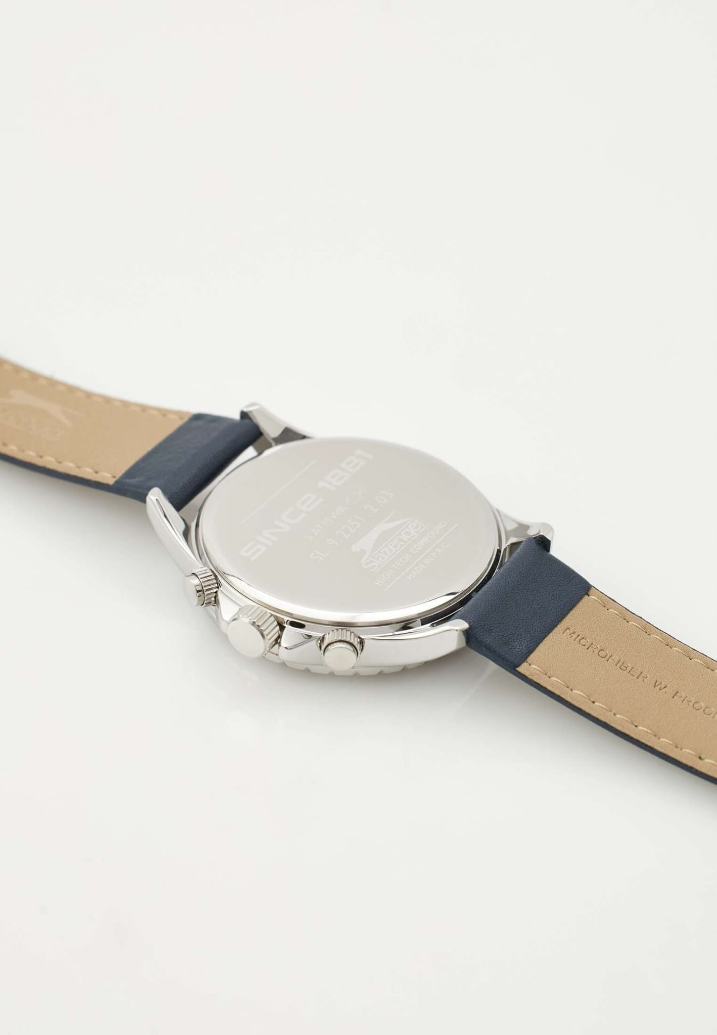 Часы Slazenger SL.09.2251.2.03 — это стильная и практичная модель, выполненная в элегантном серебристом цвете. Корпус изготовлен из металла, что обеспечивает прочность и долговечность. На безельБезельВнешний ободок, закрепляющий стекло. В спортивных часах так называется поворотное кольцо с делениями на циферблате, выполняет роль таймера – замеряет отрезки времени на шкале. Неподвижный безель – элемент декора. Однонаправленно вращающийся безель на дайверских часах позволяет фиксировать моменты погружения и выныривания на поверхность. нанесено синее IP-покрытиеIP-покрытиеМетод ионного напыления. Демонстрирует повышенную устойчивость к истиранию, окислению и химическим веществам. Под воздействием высокого давления и температуры около 1500°C молекулы металла надёжно соединяются с частицами корпуса часов.. Минеральное стеклоМинеральное стеклоМинеральное стекло представляет собой искусственно выращенный минерал кварца. Такое стекло отличается особой устойчивостью к повреждениям и царапинам. Уступает по некоторым качествам сапфировому стеклу. надежно защищает синий циферблат от царапин и повреждений. Классический кожаный ремешок синего цвета шириной 22 мм удобно фиксируется на запястье с помощью классической застежки. Диаметр корпуса составляет 44 мм, а толщина — 12 мм, благодаря чему часы смотрятся солидно и современно. Модель оснащена кварцевым механизмом, отличающимся точностью и надежностью. На циферблате представлены дополнительные малые циферблаты для отображения второго часового поясаВторой часовой поясФункция, позволяющая отображать время двух часовых поясов одновременно., дня недели и времени в 24-часовом формате, а также имеется отдельное окошко даты. Для удобства использования в темное время суток предусмотрено люминесцентное покрытиеЛюминесцентное покрытиеПозволяет считывать показания времени в темноте. Производители наносят на стрелки, часовые индексы, безель или поверхность циферблата светонакопительный состав, дающий холодное свечение. стрелок и меток. Заводная головка оснащена защитой. Водозащита уровня WR 50 позволяет не снимать часы при мытье рук или попадании под дождь. Вес модели составляет 70 грамм.
