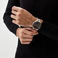 Мужские кварцевые часы Slazenger SL.09.2309.2.04 — это выразительный и функциональный аксессуар, сочетающий прочность, стиль и насыщенную комплектацию. Браслет выполнен из суперметалла с IP-покрытиемIP-покрытиеМетод ионного напыления. Демонстрирует повышенную устойчивость к истиранию, окислению и химическим веществам. Под воздействием высокого давления и температуры около 1500°C молекулы металла надёжно соединяются с частицами корпуса часов., защищён минеральным стекломМинеральное стеклоМинеральное стекло представляет собой искусственно выращенный минерал кварца. Такое стекло отличается особой устойчивостью к повреждениям и царапинам. Уступает по некоторым качествам сапфировому стеклу.. Циферблат чёрного цвета оформлен с вынесенными малыми циферблатами для индикации дня недели, даты и времени в 24-часовом формате. Стрелки и метки оснащены люминесцентным покрытиемЛюминесцентное покрытиеПозволяет считывать показания времени в темноте. Производители наносят на стрелки, часовые индексы, безель или поверхность циферблата светонакопительный состав, дающий холодное свечение., обеспечивающим хорошую читаемость в темноте. Заводная головка снабжена защитой, а задняя крышка — завинчивающаяся, что повышает надёжность конструкции. Браслет комбинированного цвета фиксируется на раскладной застёжкеРаскладная застёжкаТакой тип застёжки используется только на браслетах из металла. Она никогда не раскрывается полностью, происходит разделение на 2 и более частей. Раскладывающая застёжка снизит вероятность потери часов к минимуму., обеспечивая удобство и безопасность ношения. Водонепроницаемость 50 м позволяет использовать часы в повседневных условиях, защищая от случайных брызг и капель дождя. Модель подчёркивает индивидуальность владельца и идеально подходит как для повседневного, так и для делового образа.