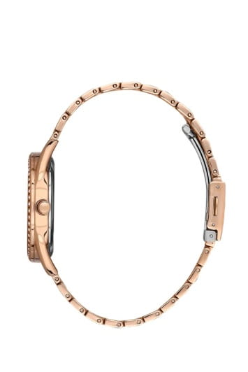 Женские кварцевые часы Slazenger SL.09.6537.3.02 – это сочетание элегантности, современного стиля и надёжности. Изящный корпус из суперметалла с IP-покрытиемIP-покрытиеМетод ионного напыления. Демонстрирует повышенную устойчивость к истиранию, окислению и химическим веществам. Под воздействием высокого давления и температуры около 1500°C молекулы металла надёжно соединяются с частицами корпуса часов. цвета розового золота, диаметром 35 мм и толщиной 9 мм, подчёркивает утончённость модели и делает их идеальным аксессуаром для любой ситуации – будь то деловая встреча, романтический вечер или повседневные выходы. Циферблат надёжно защищён минеральным стекломМинеральное стеклоМинеральное стекло представляет собой искусственно выращенный минерал кварца. Такое стекло отличается особой устойчивостью к повреждениям и царапинам. Уступает по некоторым качествам сапфировому стеклу., которое устойчиво к механическим повреждениям и сохраняет кристальную прозрачность. БезельБезельВнешний ободок, закрепляющий стекло. В спортивных часах так называется поворотное кольцо с делениями на циферблате, выполняет роль таймера – замеряет отрезки времени на шкале. Неподвижный безель – элемент декора. Однонаправленно вращающийся безель на дайверских часах позволяет фиксировать моменты погружения и выныривания на поверхность. украшен фианитами. Браслет из суперметалла с IP-покрытиемIP-покрытиеМетод ионного напыления. Демонстрирует повышенную устойчивость к истиранию, окислению и химическим веществам. Под воздействием высокого давления и температуры около 1500°C молекулы металла надёжно соединяются с частицами корпуса часов. удобно облегает запястье и фиксируется с помощью раскладной застёжкиРаскладная застёжкаТакой тип застёжки используется только на браслетах из металла. Она никогда не раскрывается полностью, происходит разделение на 2 и более частей. Раскладывающая застёжка снизит вероятность потери часов к минимуму., обеспечивая надёжность и комфорт в повседневном ношении. Утончённый стиль, внимание к деталям и практичность делают эту модель идеальным выбором для современных женщин, ценящих эстетику и функциональность. Водозащита до 30 метров позволит защитить корпус от случайных брызг или капель дождя.