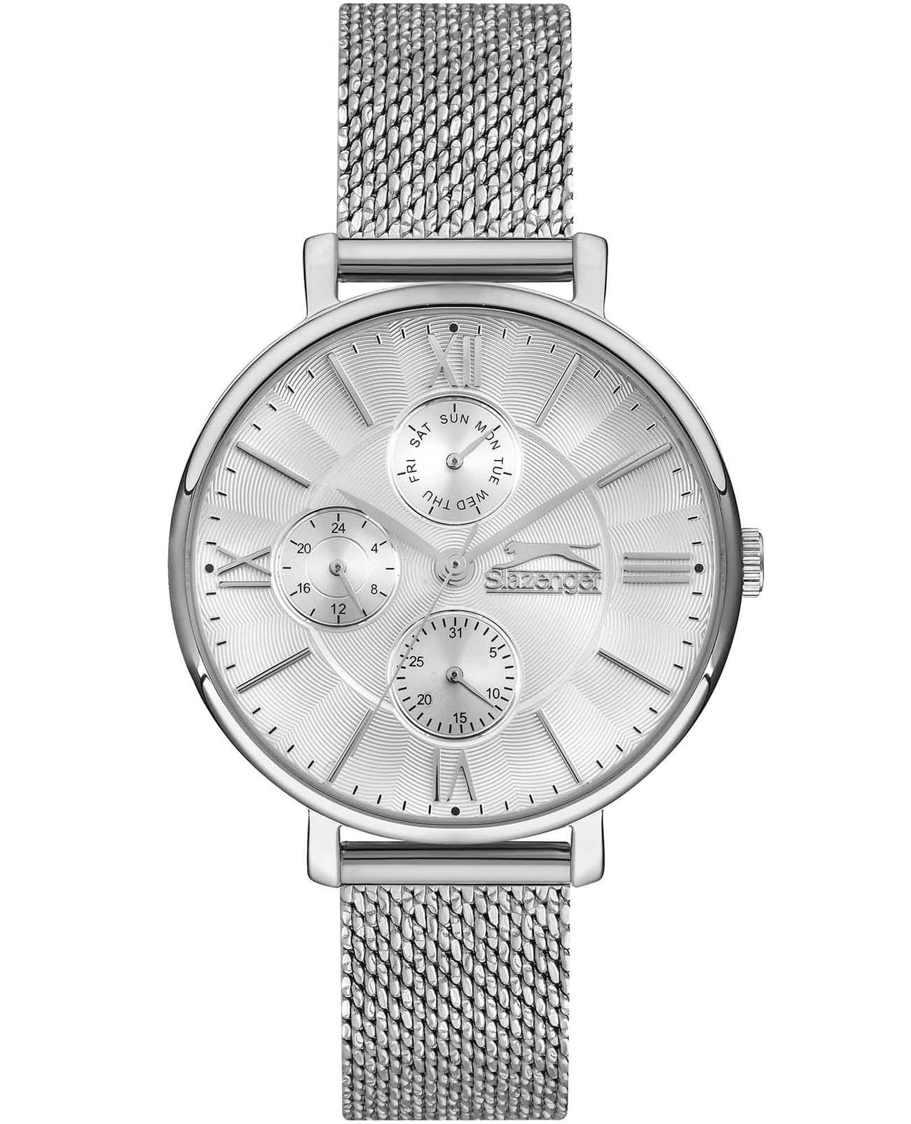 Женские элегантные наручные часы Slazenger SL.09.6543.4.04 сочетают в себе современный стиль и функциональность. Корпус выполнен из суперметалла, придающий модели дополнительную прочность и элегантный внешний вид. Изысканный циферблат защищён минеральным стекломМинеральное стеклоМинеральное стекло представляет собой искусственно выращенный минерал кварца. Такое стекло отличается особой устойчивостью к повреждениям и царапинам. Уступает по некоторым качествам сапфировому стеклу., устойчивым к царапинам и повреждениям. Часы оснащены дополнительными циферблатами, отображающими дату, день недели и 24-часовой формат времени, что добавляет практичности в повседневном использовании. Водонепроницаемость 3 АТМ позволяет использовать часы в повседневных условиях — при мытье рук или под лёгким дождём. Браслет из суперметалла с раскладным замкомРаскладной замокДанный вариант застежки используется только на часах с металлическим браслетом. Отличительная особенность такого крепления в том, что длина браслета становится универсальной и вы можете самостоятельно отрегулировать нужный вам размер – застежка просто двигается по браслету часов.  обеспечивает надёжную фиксацию и комфорт при ношении. Эта модель идеально подходит для женщин, ценящих стиль, функциональность и надёжность в одном аксессуаре.