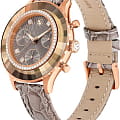Часы Swarovski 5671153 представляют собой изысканное сочетание стиля и функциональности, идеально подходящее для ценителей элегантных аксессуаров. Эти швейцарские кварцевые часы с хронографомХронографФункция позволяет измерять отрезки времени с особой точностью: часы, минуты, секунды. Верным признаком хронографа является наличие на циферблате 3 дополнительных окошек-счётчиков. и  секундомеромСекундомерСекундоме́р — прибор, способный измерять интервалы времени с точностью до долей секунды. заключены в корпус из стали с розовым PVDPVDУльтратонкое покрытие наносится в технике вакуумного напыления, сочетает в себе нитрид титана особой прочности со слоем золота или оксида хрома. Несёт в себе декоративную или защитную функцию. покрытием, который дополнен коричневым циферблатом. Особое внимание привлекает инкрустация кристаллами Swarovski, украшающими корпус и циферблат, создавая эффектный блеск и подчеркивая роскошь изделия. Минеральное стеклоМинеральное стеклоМинеральное стекло представляет собой искусственно выращенный минерал кварца. Такое стекло отличается особой устойчивостью к повреждениям и царапинам. Уступает по некоторым качествам сапфировому стеклу. надежно защищает циферблат, а водозащита 50 WR позволяет не беспокоиться о контакте с водой в повседневных ситуациях. Эти часы не только точные и надежные, благодаря кварцевому механизму, но и невероятно стильные, благодаря кристальному безелюБезельВнешний ободок, закрепляющий стекло. В спортивных часах так называется поворотное кольцо с делениями на циферблате, выполняет роль таймера – замеряет отрезки времени на шкале. Неподвижный безель – элемент декора. Однонаправленно вращающийся безель на дайверских часах позволяет фиксировать моменты погружения и выныривания на поверхность. и коричневому ремешку из натуральной итальянской телячьей кожи с тиснением под крокодила, что обеспечивает комфортное ношение и стильный внешний вид. Заводная головка дополнительно украшена кристаллом круглой огранки, придающим часам завершенность и изящество. Люминесцентное покрытиеЛюминесцентное покрытиеПозволяет считывать показания времени в темноте. Производители наносят на стрелки, часовые индексы, безель или поверхность циферблата светонакопительный состав, дающий холодное свечение. на стрелках обеспечивает отличную видимость в темноте. Эти часы не просто аксессуар, а настоящее произведение искусства, способное стать ярким акцентом любого образа.