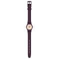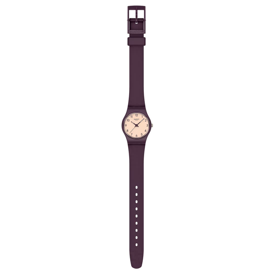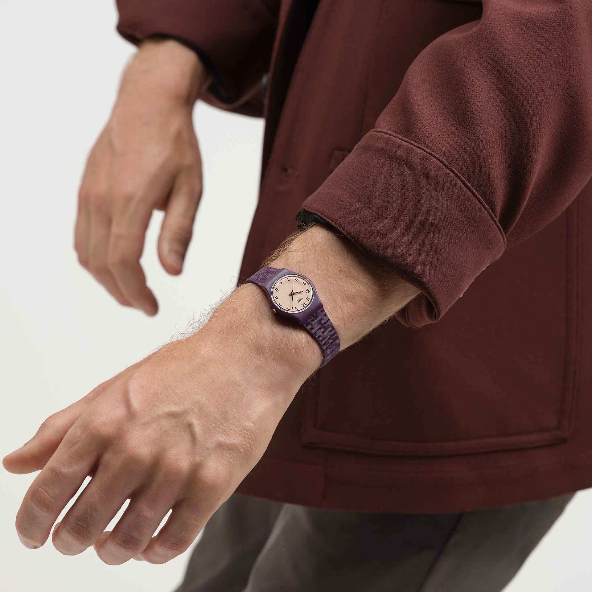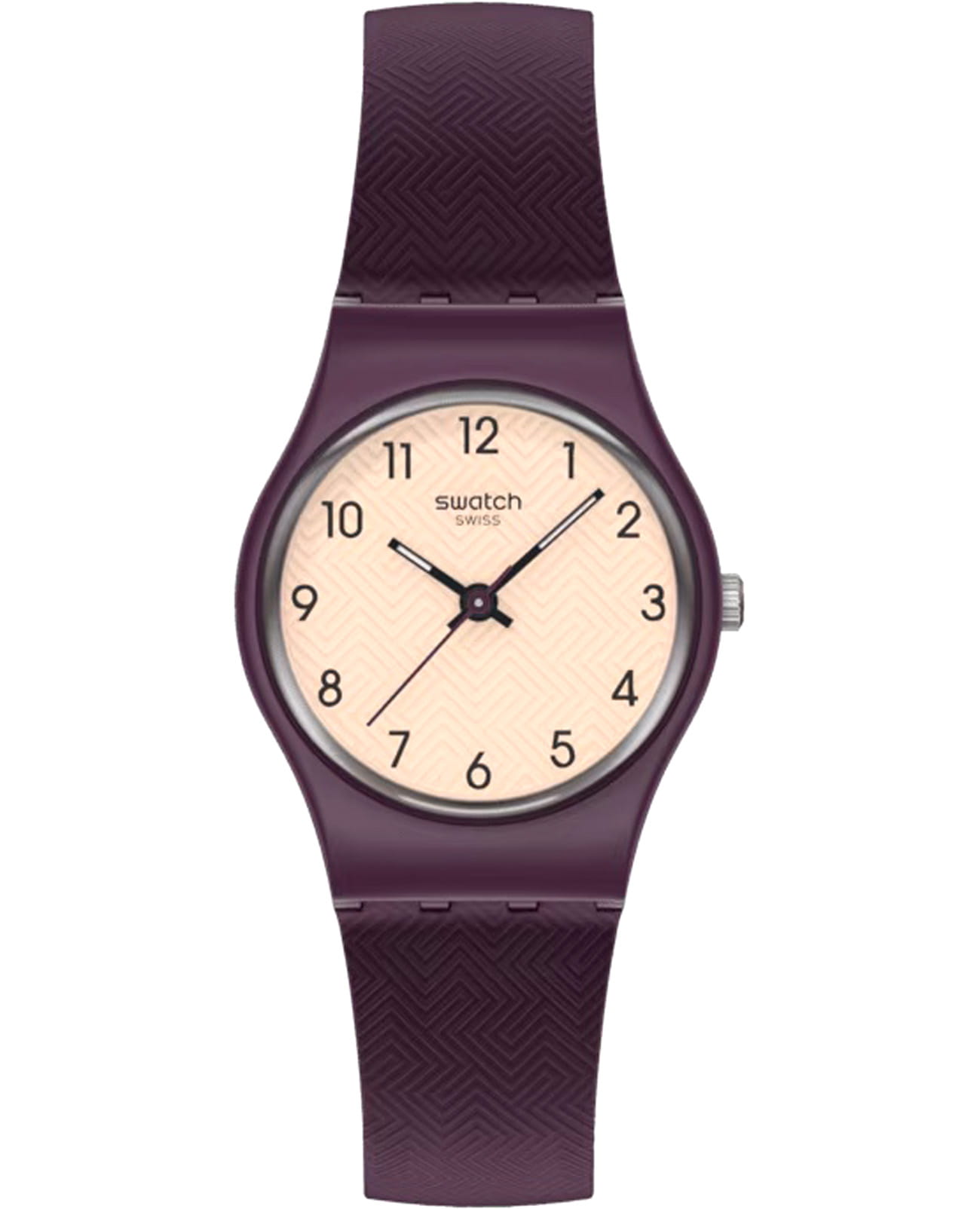 Женские наручные часы Swatch REPEAT CHIC LR138 — это стильный и современный аксессуар для тех, кто ценит лёгкость и комфорт. Корпус выполнен из пластика, диаметром 25 мм и толщиной 7 мм, что обеспечивает долговечность и утончённый внешний вид. Циферблат защищён органическим стеклом, устойчивым к повреждениям. Модель оснащена кварцевым механизмом, обеспечивающим высокую точность хода. Часовая и минутная стрелки с люминесцентным покрытиемЛюминесцентное покрытиеПозволяет считывать показания времени в темноте. Производители наносят на стрелки, часовые индексы, безель или поверхность циферблата светонакопительный состав, дающий холодное свечение.. Силиконовый текстурированный матово-фиолетовый ремешок на стандартной застёжке гармонично дополняет корпус и обеспечивает комфортное ношение. Водозащита 30 метров позволит защитить корпус от случайных брызг или капель дождя. Эти часы подойдут для повседневного ношения и станут ярким акцентом в вашем наряде.